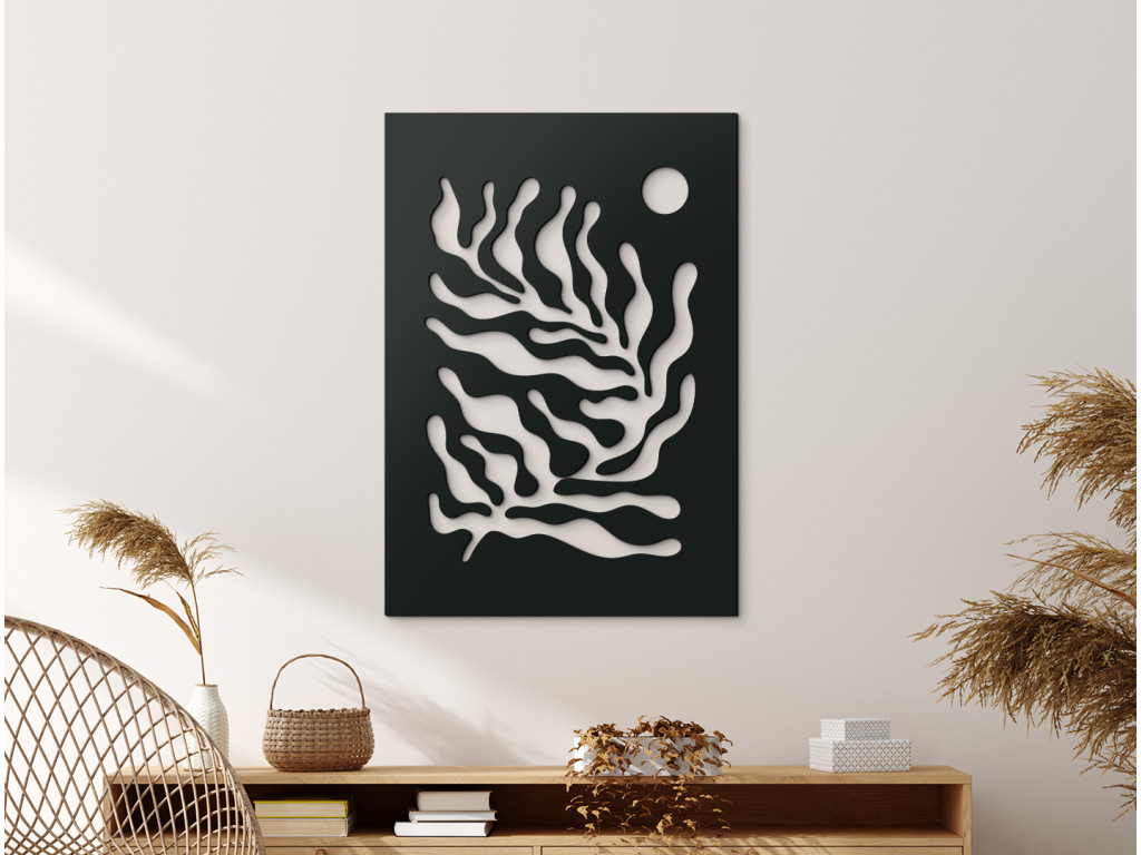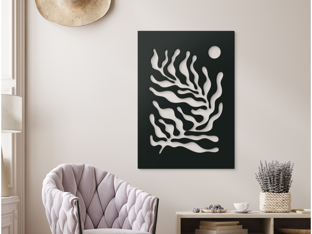 A Korallok című absztrakt falikép egy növény egyedi szépségét ragadja meg, amely a napfény melegében virágzik. A finom vonalak a természet energiáját és vitalitását idézik. Ez a szemet gyönyörködtető darab harmonikus, élettel teli hangulatot teremthet bármely enteriőrben.