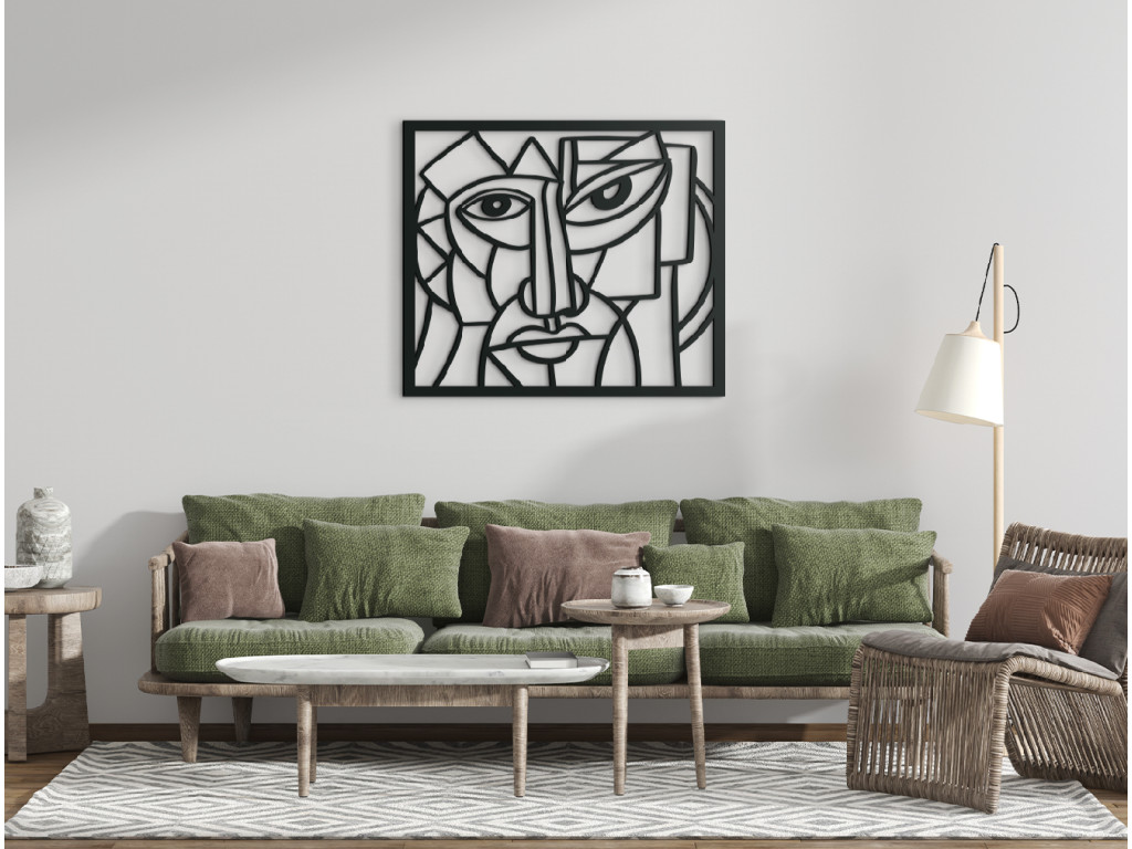 Egy kubista festmény a kubizmus mesterétől - Pablo Picassotól, nem hagyományos fa változatban ideális kiegészítője a modern enteriőrnek. A képen egy idős úriember vagy esetleg egy más arc látható. Alkalmas modern terekbe, és remek ajándék a kubista stílus kedvelőinek.