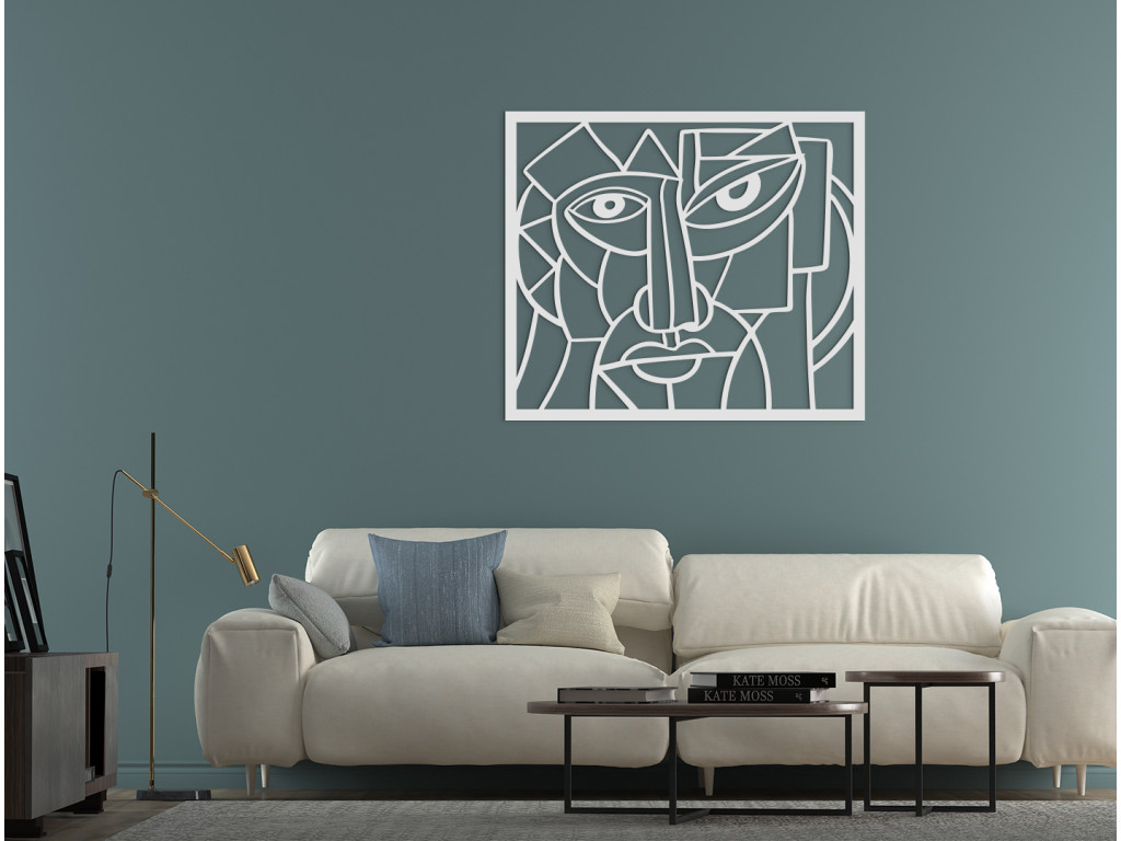 A kubista stílusban megrajzolt arc modern dizájnt hoz a belső térbe. A kubista stílus arról volt ismert, hogy egy tárgyat egyszerre több szögből ábrázolt. Tegye világosabbá zord falait az Öreg úr egyedi faképével, színes dekorációval. A matricát tetszés szerint felakaszthatja és elhelyezheti.