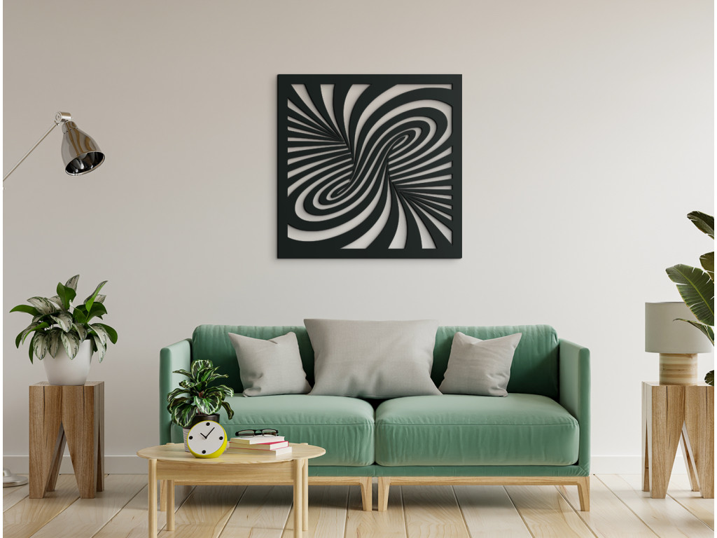 Kölcsönözzön eredeti dizájnt irodájának, nappalijának, hálószobájának vagy előszobájának. A modern fali dekoráció különböző hosszúságú és különböző, tölcsérre emlékeztető, összefont csíkokat ábrázol. A képet igényei szerint testreszabhatja a méret és a szín kiválasztásával.