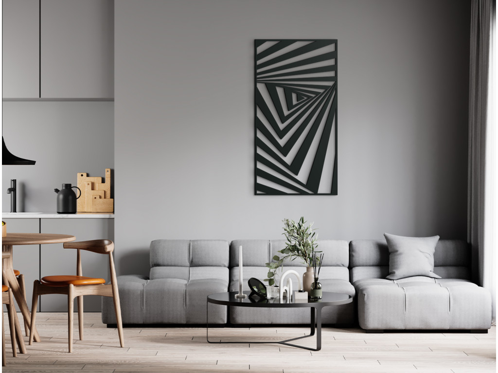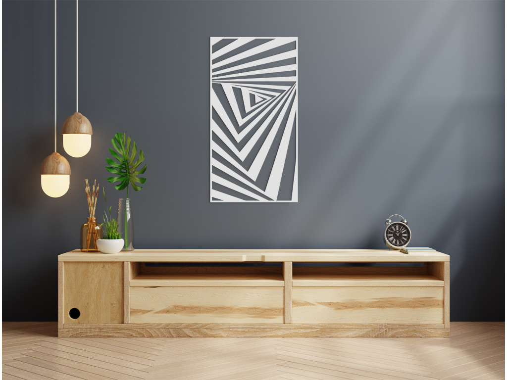 Díszítse irodáját, nappaliját, hálószobáját vagy előszobáját egy nem mindennapi dizájnú fa falmatricával. A modern faldekoráció különféle hosszú csíkokat mutat, amelyek alagúthoz hasonlítanak. A képet igényei szerint testreszabhatja a méret és a színárnyalat kiválasztásával.