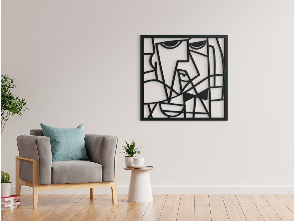 Az avantgárd művészeti irányzatából kibontakozó művészeti irány, a kubizmus elsősorban az ember jellegzetes vonásainak ábrázolásával tűnt ki. A frakkba öltözött úriember ábrázolása egy pohár borral a kezében eredeti megjelenést kölcsönöz falának. A kubista stílusú fakép minden modern enteriőrben ragyogni fog. A festmény geometriai formákból összeállított arcot ábrázol. Modern és klasszikus stílusokhoz egyaránt passzol.