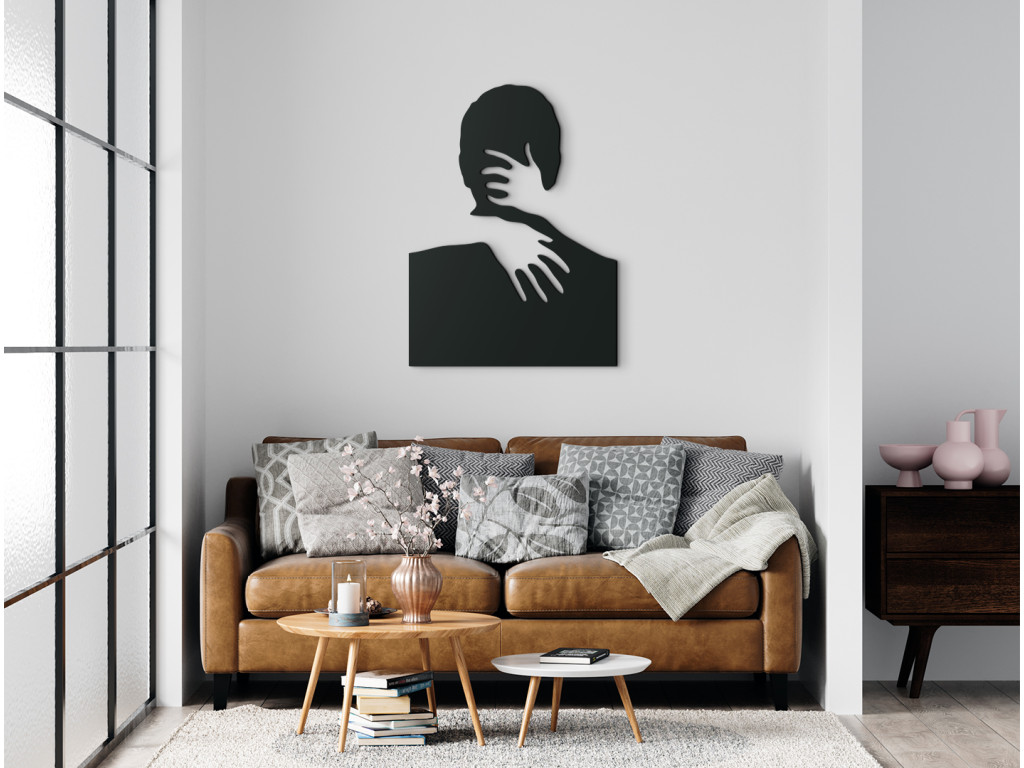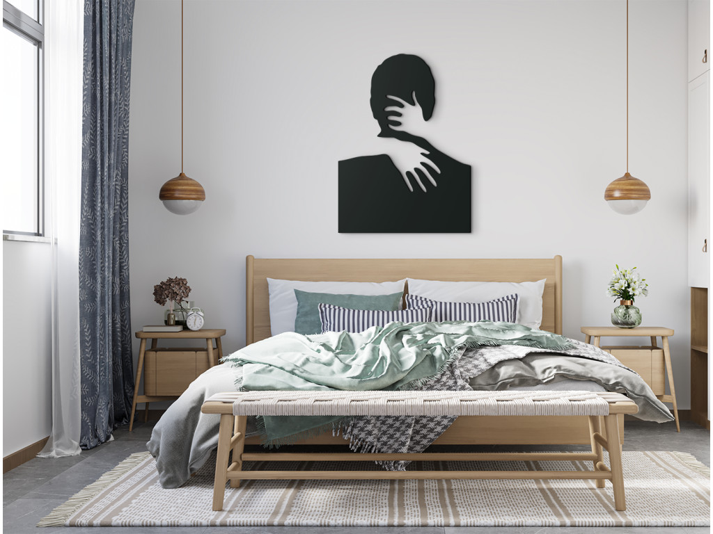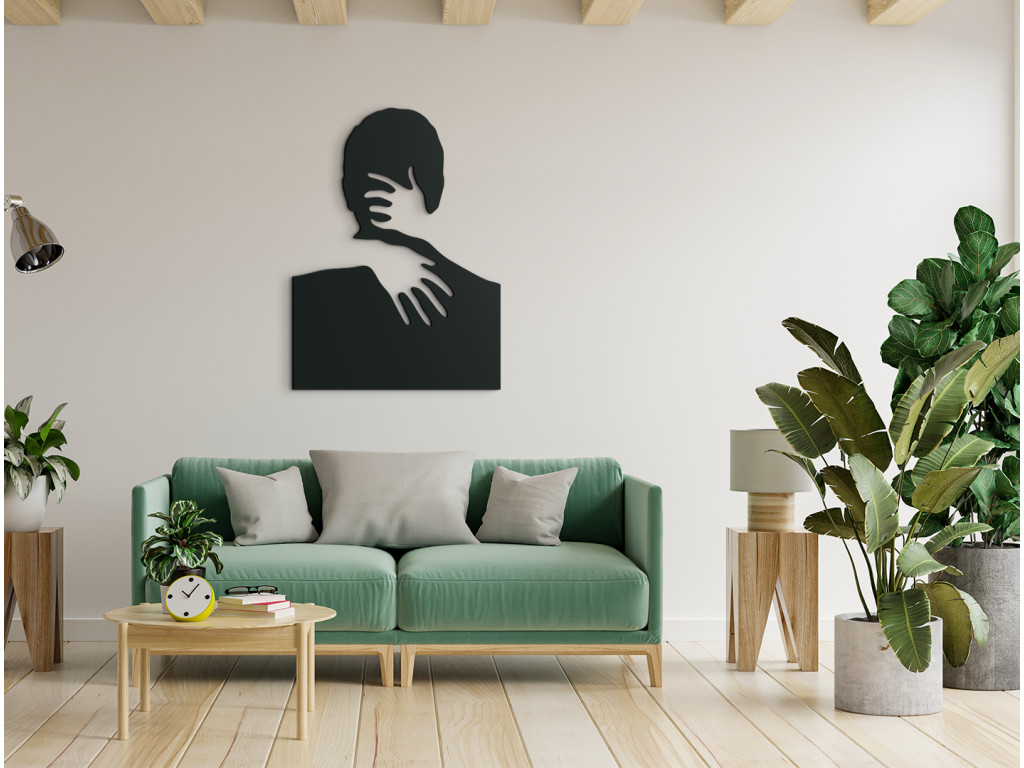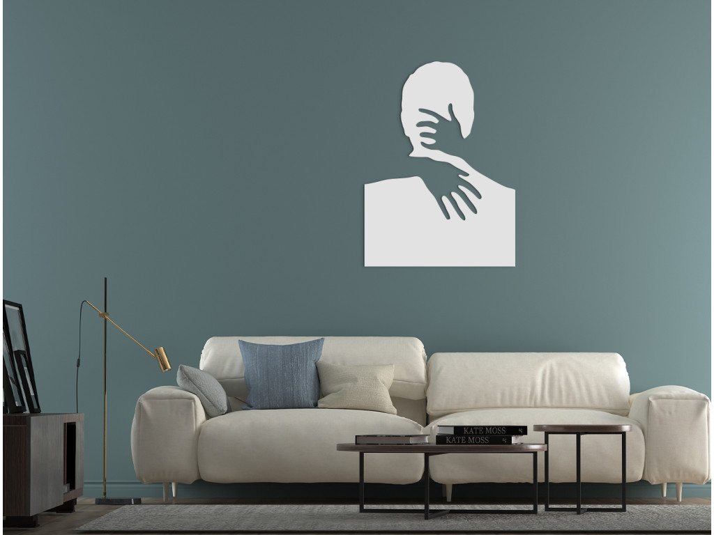 Ennek a fa falmatricának a romantikus motívuma különösen alkalmas a modern belső terekbe. Egy férfi és egy nő ölelését egy fa matrica rejti el. A nő absztrakt ábrázolása egy férfit ölelő, látható kezekből áll. A bájos dekoráció díszítheti nappalija, étkezője, hálószobája vagy bármely más helyiség falát. Egy fából készült matrica kiváló ajándék is lehet szeretteinek.