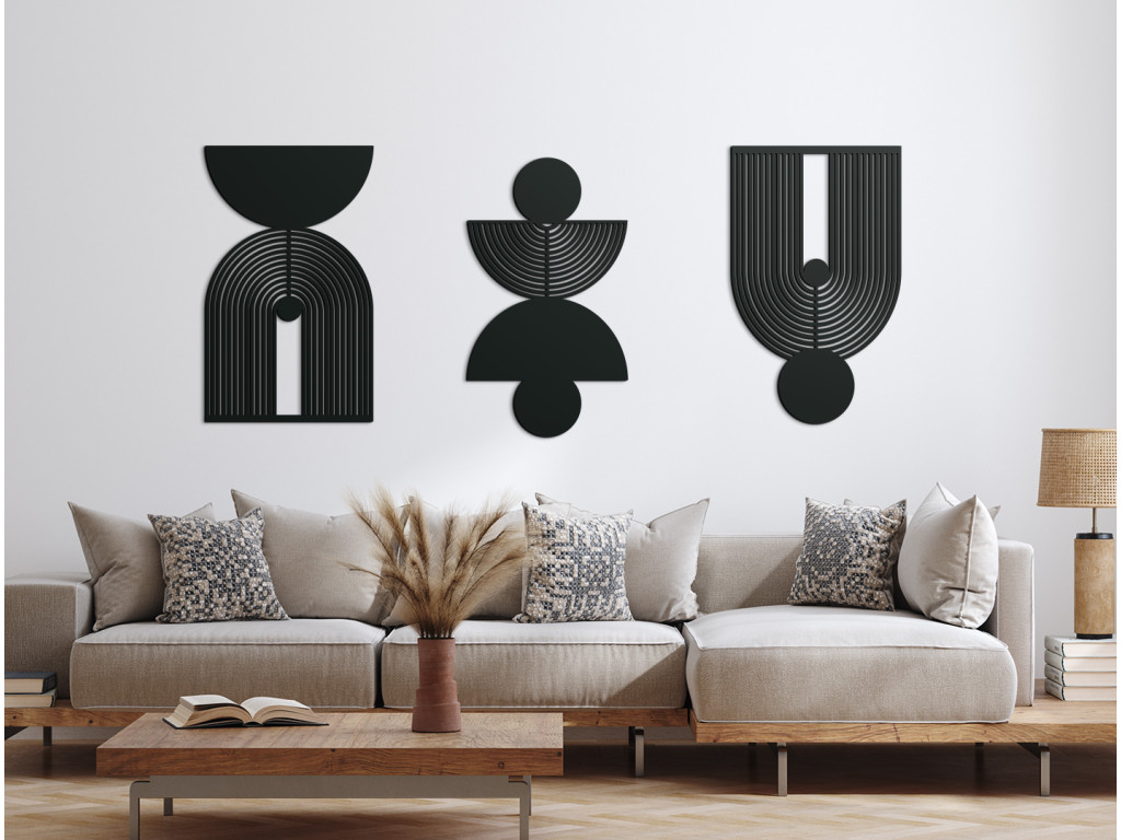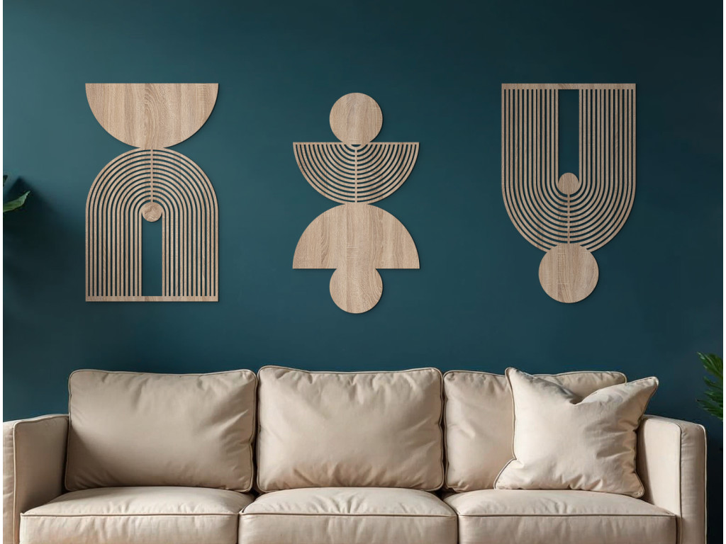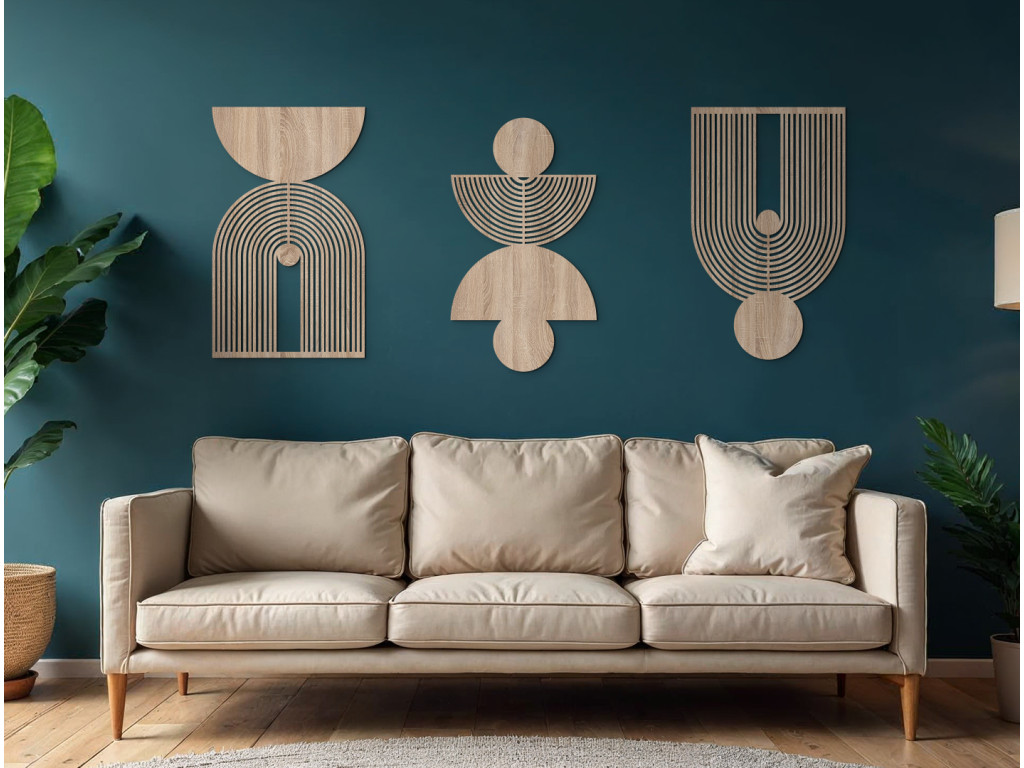 A Geometrikus alakzatok fali dekoráció modern elem, letisztult vonalakkal és érdekes mintákkal. Minimalista kialakításának köszönhetően remekül illik különféle belső stílusokhoz. Harmóniát és vizuális egyensúlyt visz a térbe.