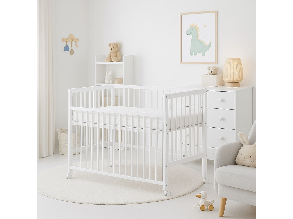 A Domčo fehér kiságy a klasszikus gyermekágyak közé tartozik. Kiváló minőségű borovi fenyőfából készült, felülete kezelt. Praktikus rendszerrel rendelkezik az oldalcsrács leengedésére.