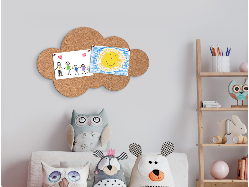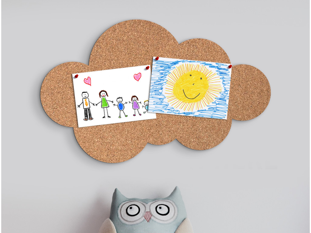A Felhő parafatábla praktikus kiegészítő a gyerekszobába. Akaszd fel, és tűzzétek ki rá a rajzokat vagy kreatív alkotásokat.