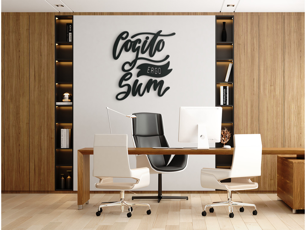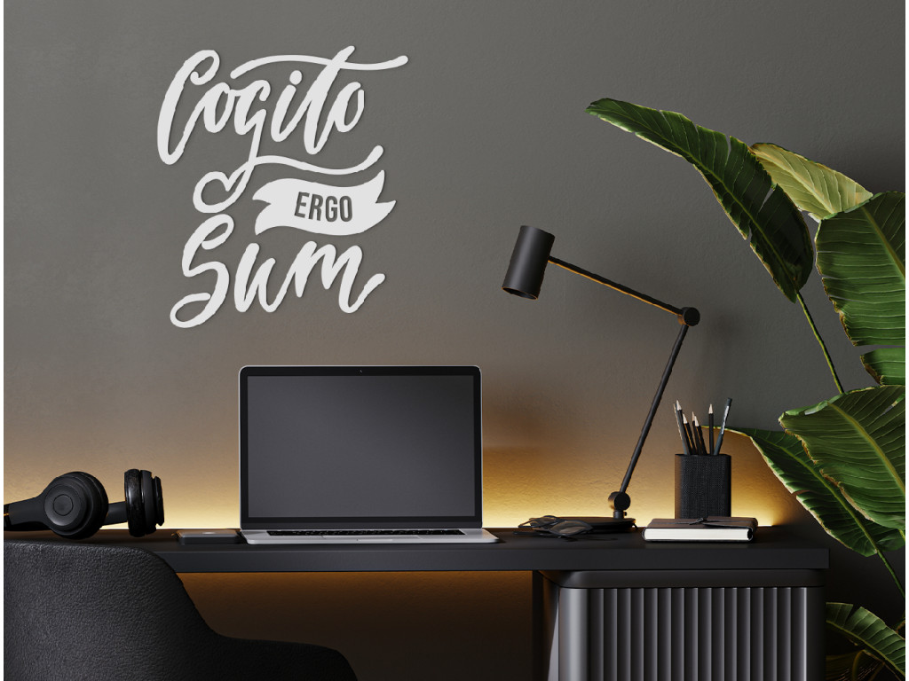 Ki ne ismerné az híres Cogito ergo sum - Gondolkodom, tehát vagyok kijelentést, amelyet René Descartes francia filozófus használt először Principia philosophiae című művében? A fa dekoráció modern dizájnnal, időtlen üzenettel, bármilyen stílusban berendezett enteriőrbe illeszkedik.