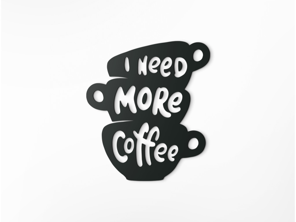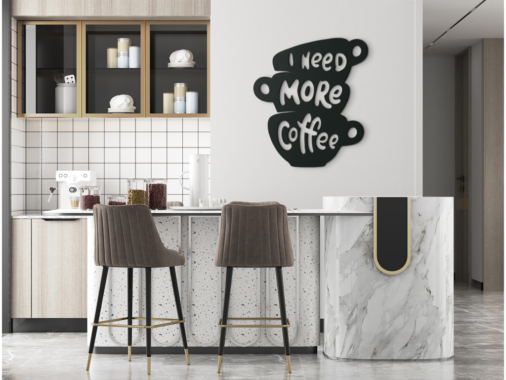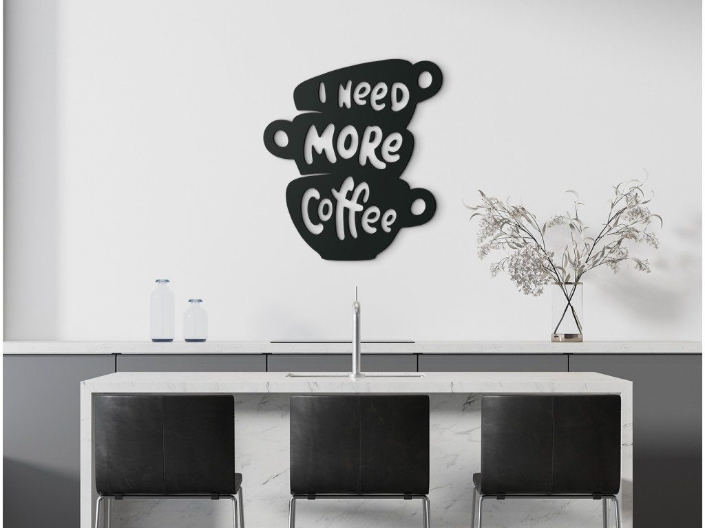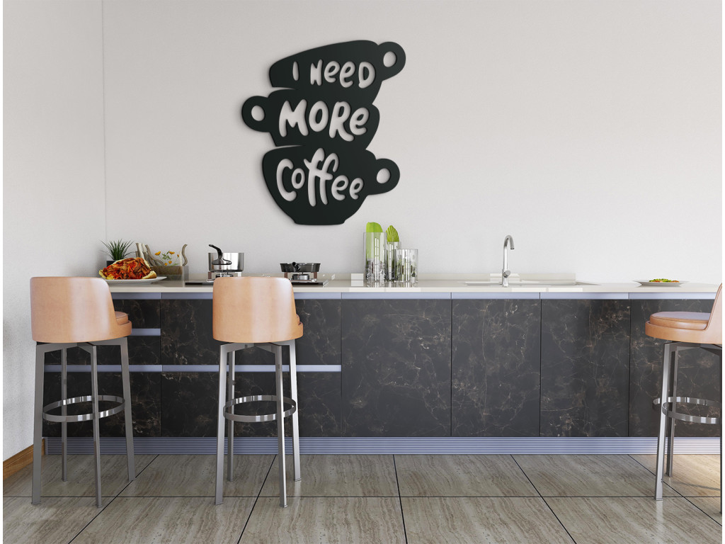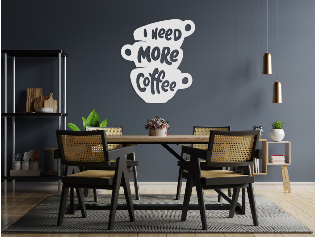 Az I need more coffee fa felirat ideális azok számára, akik el sem tudják képzelni az életüket kávé nélkül. Ha egyszerűen több kávéra van szüksége, a falon lévő beszédes matrica elmondja ön helyett.