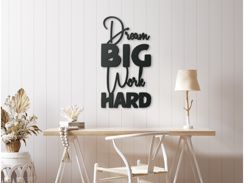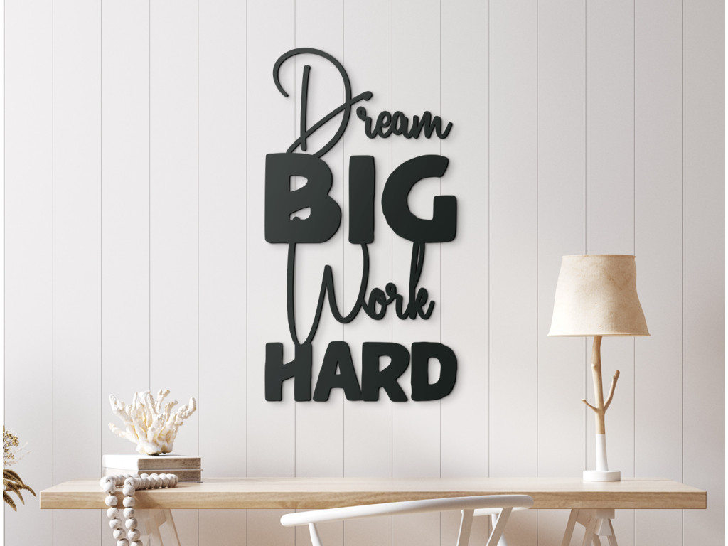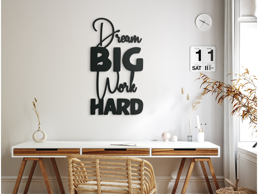 A Dream big work hard fa faldísz motivációs idézetként szolgál majd a célok kitűzéséhez, majd azok eléréséhez. A tábla cselekvésre ösztönöz, és egyben stílusosan kitölti a diákszobában vagy az irodában a falon lévő üres helyet. A matricát ízlése szerint választhatja ki a 8 elérhető színnek és 3 méretnek köszönhetően.