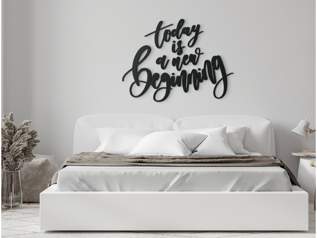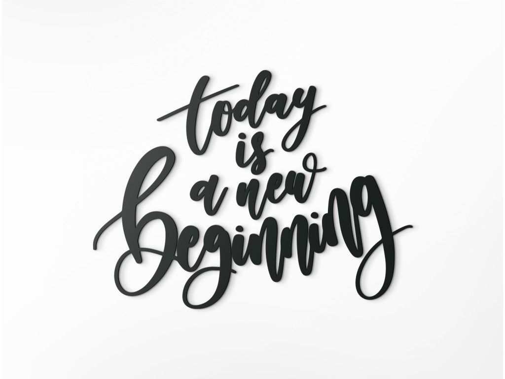 A mai nap egy új kezdet. A Today is a new beginning felirat magyar fordítása minden egyes nap új kezdetre és kezdésre buzdít. Bízzon képességeiben, küzdjön és tartson ki a törekvéseidben. A Today is a new beginning szlogen például irodába, otthoni dolgozószobába diák- vagy kollégiumi szobába is illik.