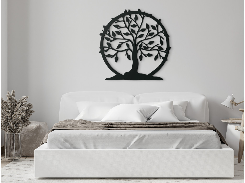 Szépítse belső terét egy lenyűgöző kiegészítővel. Az Életfa Az élet körforgása fa matrica egy lombos fát ábrázol elágazó ágakkal, kör alakú kerettel keretezve, aminek köszönhetően a kép erős benyomást kelt. A fából készült Életfa alkalmas például az étkezőbe, a konyhába, de a folyosóra vagy a nappaliba is.