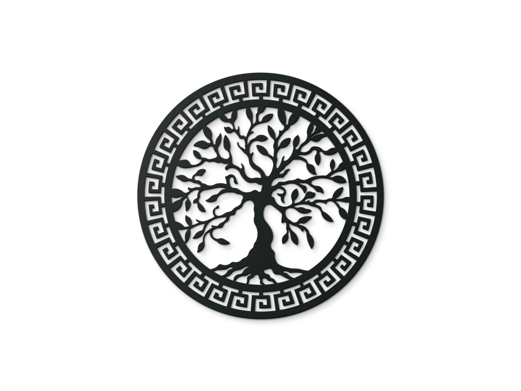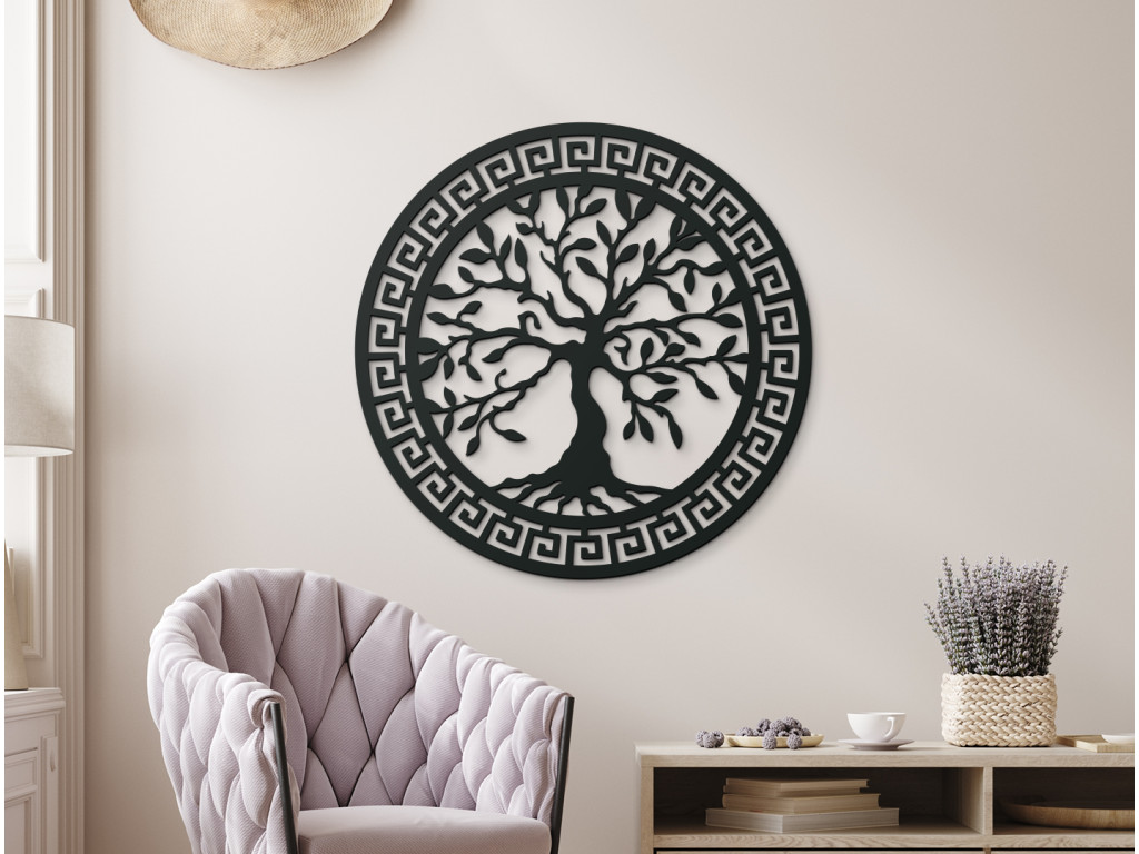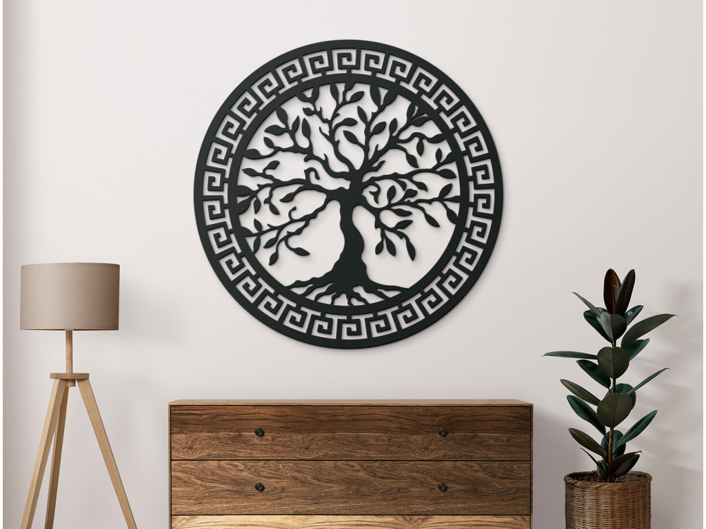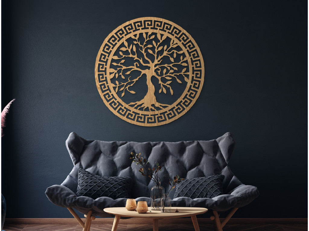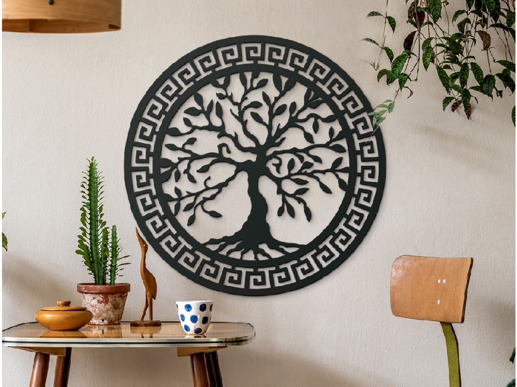 A falon lévő fa életfa egy elegáns dekoráció, faragott görög mintával. Ez az eredeti darab stílusos megjelenést kölcsönöz a térnek, és az életet, a növekedést és a harmóniát szimbolizálja. Ideális nappali, hálószoba vagy iroda dekorációjaként.