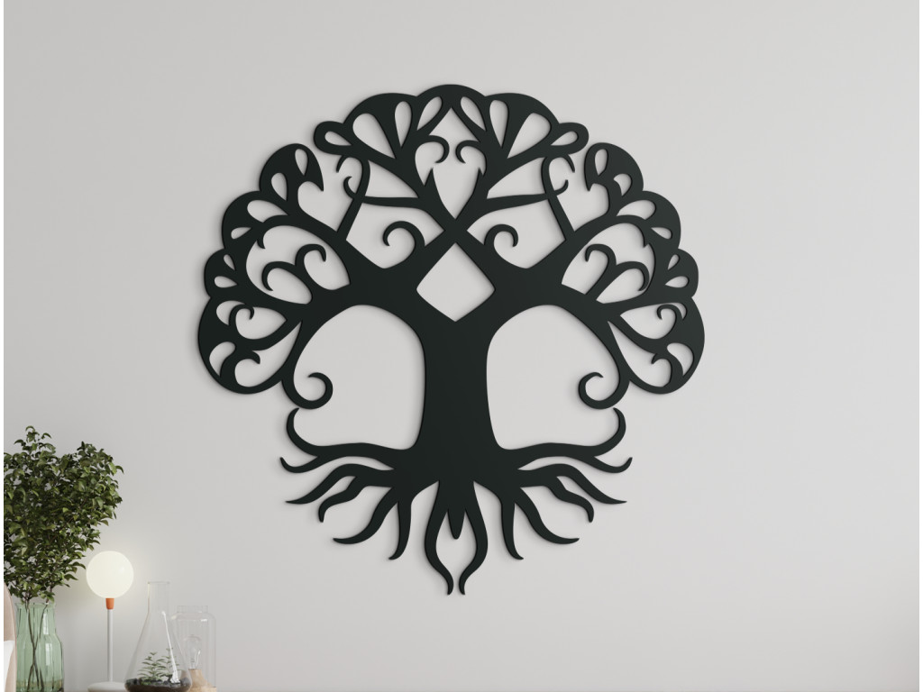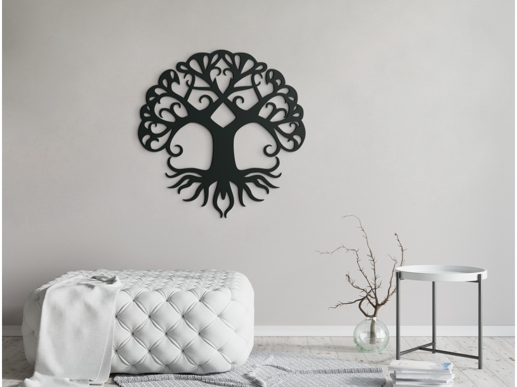Tegye különlegessé hálószobáját, nappaliját, étkezőjét vagy előszobáját egy fa fali dekorációval, amely tematikusan ábrázolja az Életfát. A népszerű motívum félköríves fakoronát ábrázol, díszesen csavart ágakkal, központi törzsével és mélyre nyúló gyökereivel. Az érdekes kép különféle szimbólumokat rejt, például az újjászületés, a béke és a stabilitás szimbólumát.
