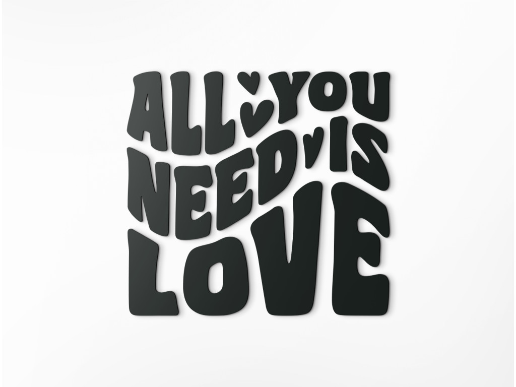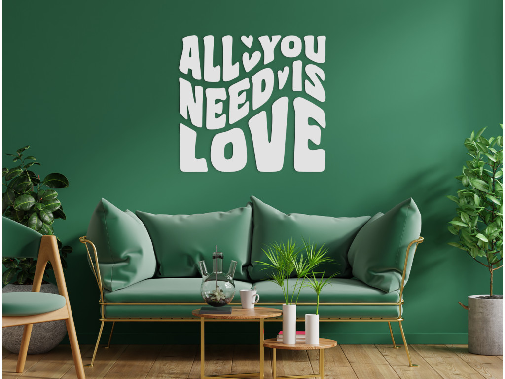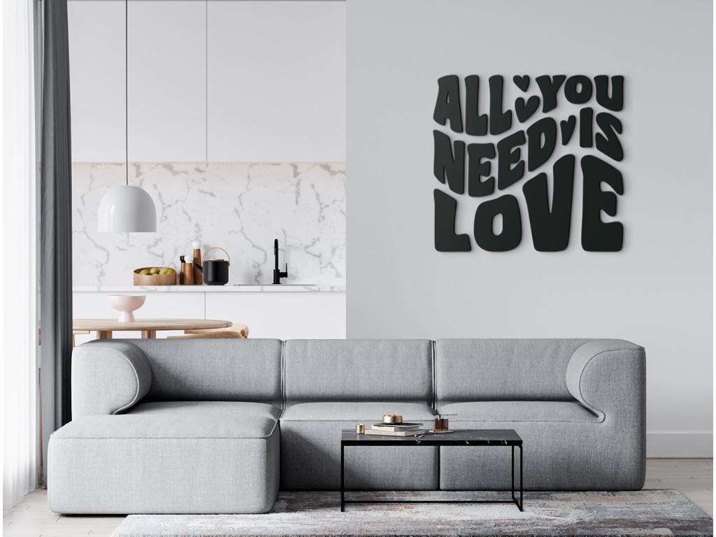 Az All you need is love mottóval ellátott fa fali idézet tündökölni fog a modern enteriőrben. A gyönyörű dizájn mély jelentéssel kombinálva megfelelő kiegészítője az otthonnak.