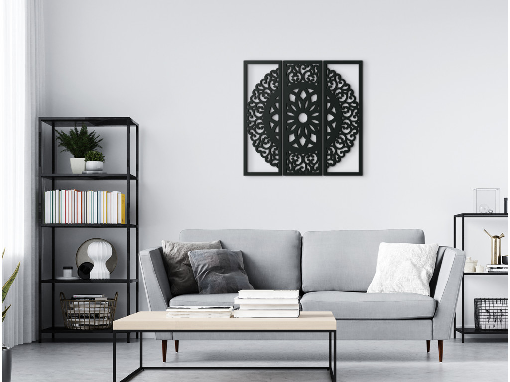 Ha olyan dekorációt keres, amely ragyogni fog a belső térben, akkor jó helyen jár. A Szimmetria Mandala 3 részből áll, amelyek kapcsolódnak egymáshoz, és gyönyörű képet hoznak létre egy modern nappaliban.