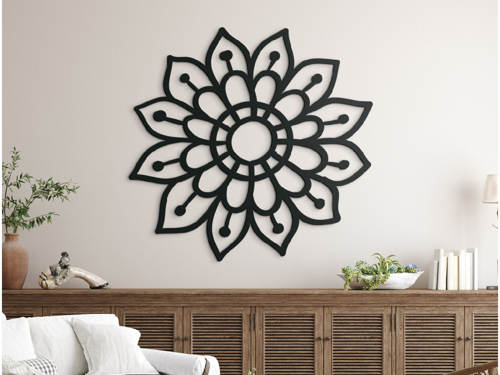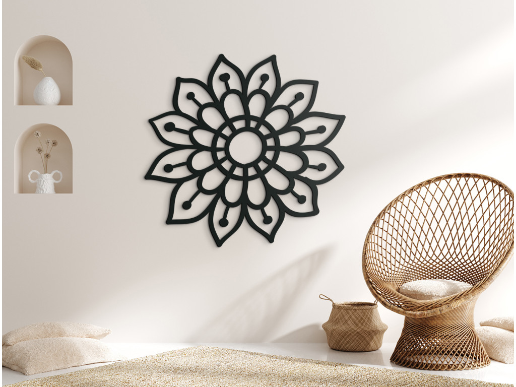 A mandala ideális mind a modern, mind a hagyományos belső terekbe, ahol a dekoráció központi elemévé válik. A fúrás nélküli egyszerű összeszerelés lehetővé teszi a gyors és kényelmes falra helyezést.