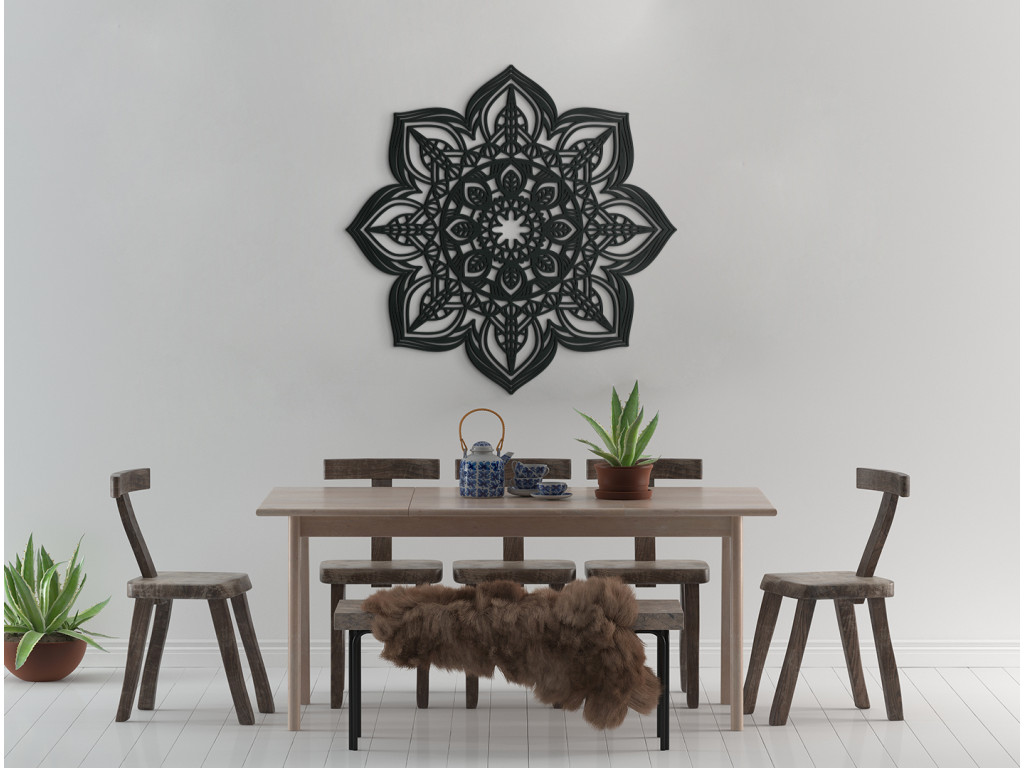 A faragott 3D fali Mandala csodálatos dekorációja a lakásnak, amely nemcsak dekoratív, hanem nyugtató funkciót is betölt a falon. Jelenleg a mandalák nagyon divatos, modern és kívánatos dizájn kiegészítők.