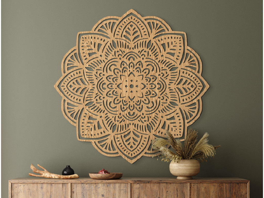 A faragott 3D-s mandala nyugodt és zavartalan hangulatot varázsol a belső térben. A harmónia, a béke és az energia forrása. A Boldogság mandala modern és klasszikus enteriőrbe egyaránt illeszkedik. Felakaszthatja a nappaliban, hálószobában, előszobában. A falon nemcsak kép, hanem pszichológiai eszköz is lesz.