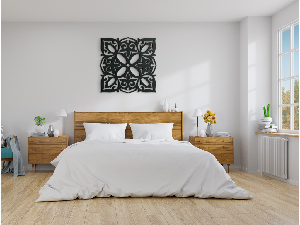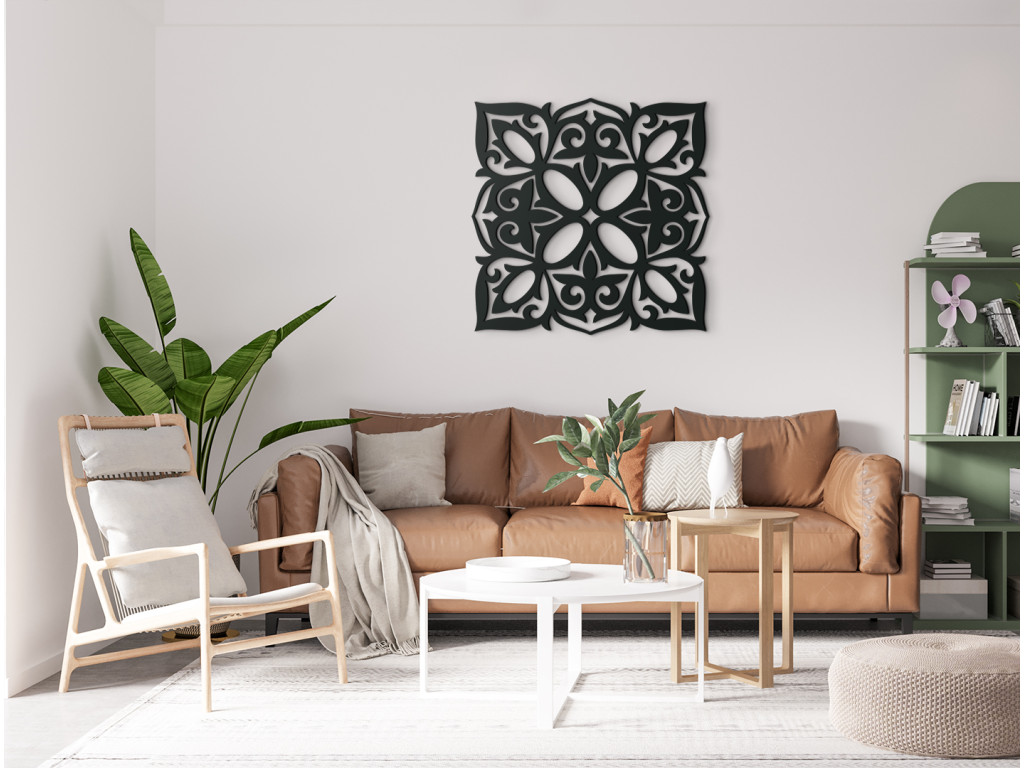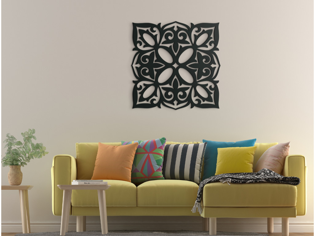 A négyzet alakú mandala harmonizálja a testet és lelket. Javítja a hangulatot, megnyugtatja a lelket, gazdagítja megélt élményeket. A mandala eredetiséget és modern dizájnt hoz a belső térbe. Alkalmas nappaliba, étkezőbe, hálószobába és előszobába.