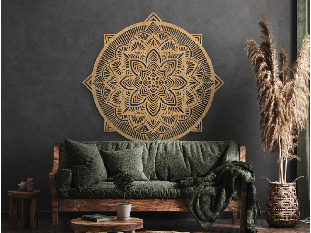 A fali fa mandala az egyik legnépszerűbb lakásdísz. Nyugodt és megtisztító érzést kelt. A szép díszítés mellett szerepe még a harmonizálás és a nyugtatás. Tökéletesen megállja a helyét a hálószobában, a nappaliban, a folyosón és az előszobában. Pozitív pszichológiai hatásai miatt a Szenvedély mandala az egyik legkedveltebb darabok közé tartozik.