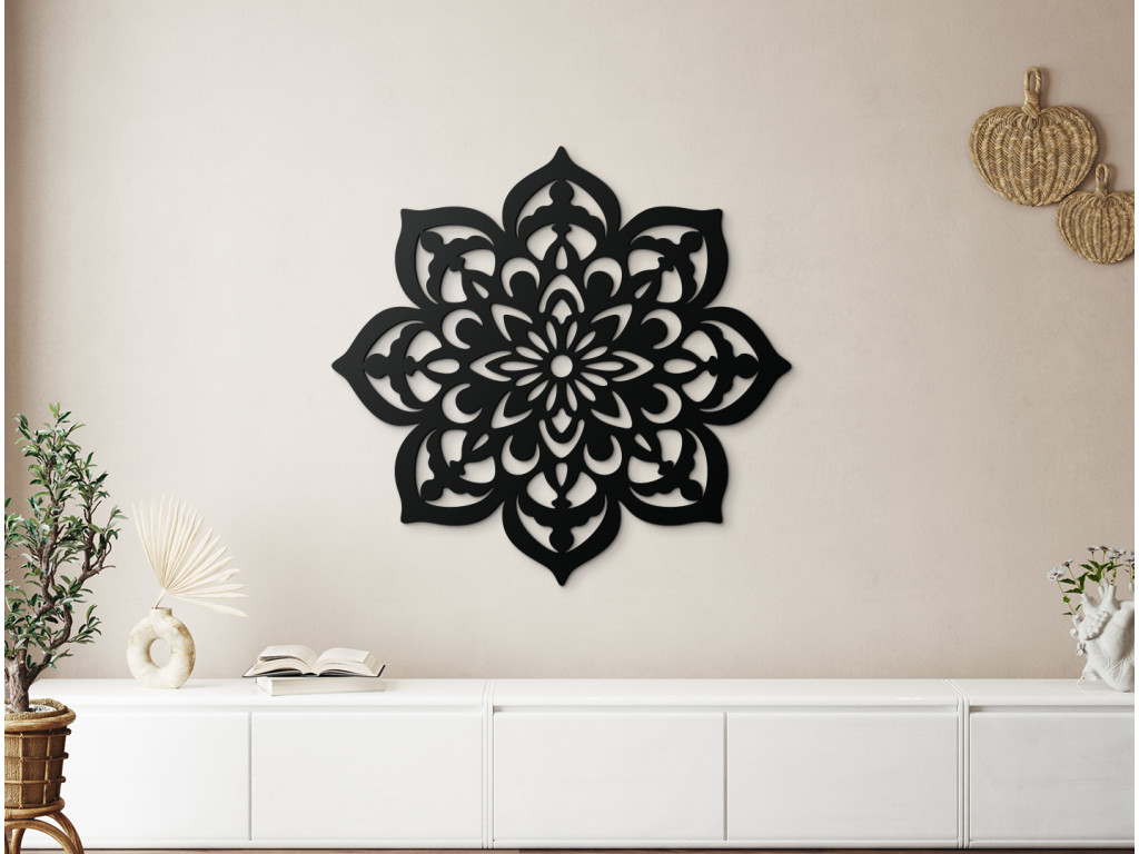 A Rózsa fali mandala egy művészi elem, amely elegánsan ötvözi a rózsa szimbolikáját a hagyományos mandala mintákkal, egyedi és kiegyensúlyozott dizájnt hozva létre. A rózsa és a mandala minden részlete gondosan kidolgozott, biztosítva a magas szintű esztétikát és minőséget. Ez a dizájn a béke és a harmónia érzését kelti, ideális teret teremtve a kikapcsolódáshoz és a meditációhoz. A Rózsa fali mandala tökéletes kiegészítő azok számára, akik a természetes szépség és a spirituális szimbolika kombinációját keresik, eleganciával és egyensúlynal gazdagítva bármilyen belső teret.