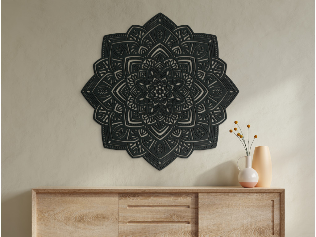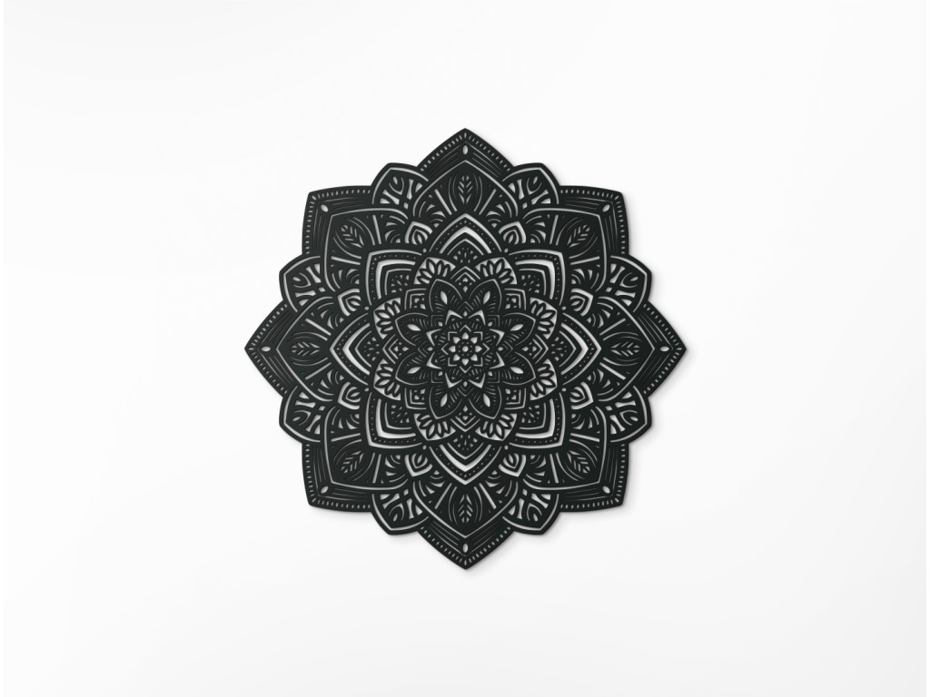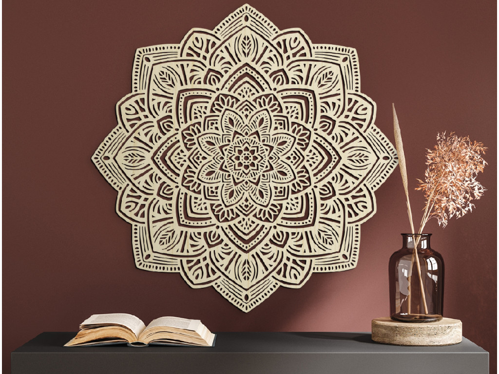 A faragott mandala a harmónia, a béke és az energia forrása. A Szimmetria mandala egyfajta kapcsolatot jelent az egyes életszakaszok között. A modern mandala bármilyen belső térbe illeszkedik. A falon nemcsak kép, hanem pszichológiai eszköz is lesz.