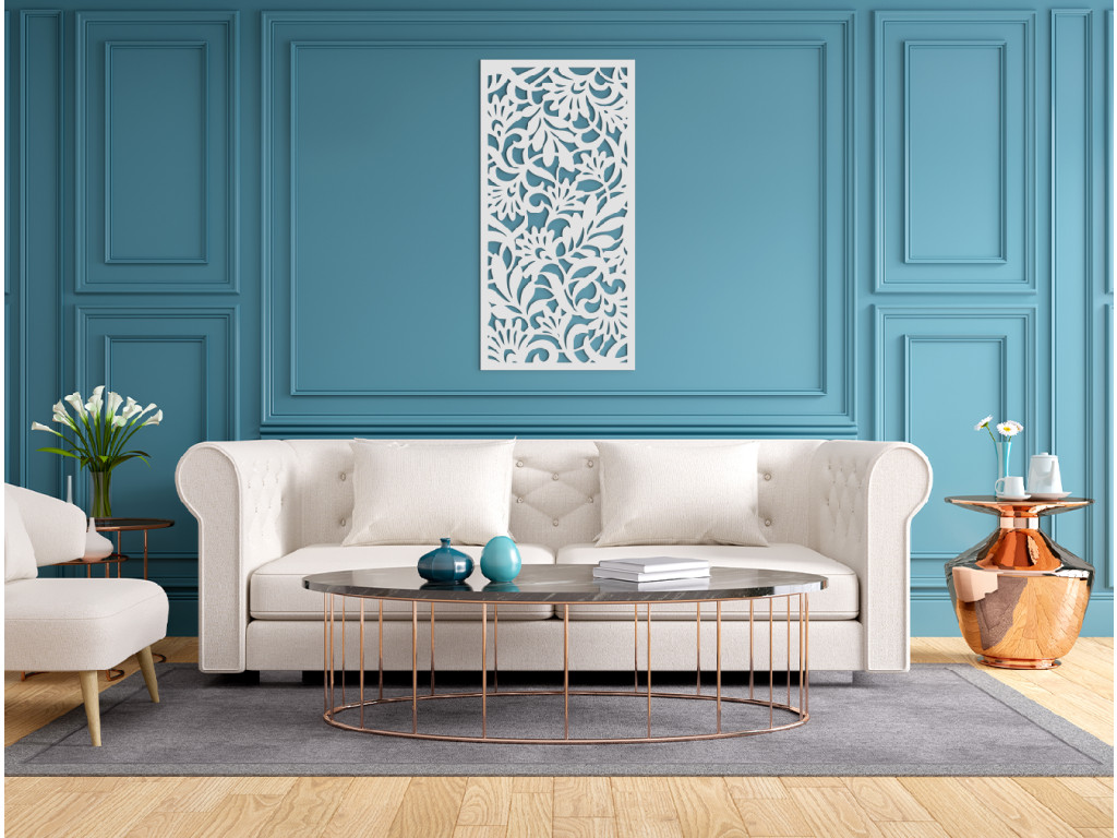 Ha szereti a finom és precízen kidolgozott részleteket, a Kúszónövények fa panel tökéletes lesz az ön számára. A klasszikus téglalap alakú keret sűrűn tele van mutatós virágokkal és levelekkel, így első pillantásra egy virágzó növényzettel benőtt pergolára emlékeztet.