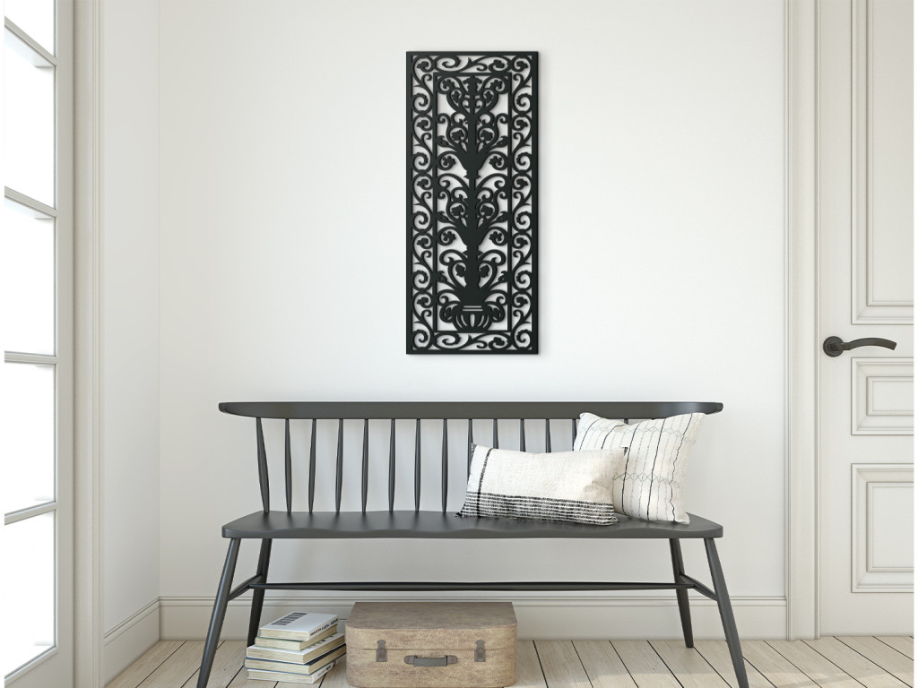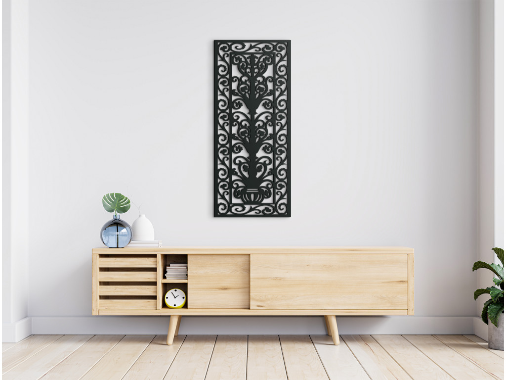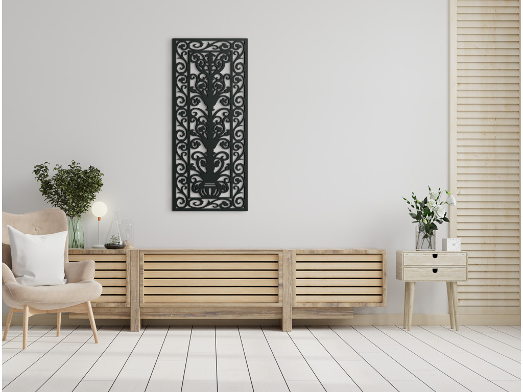 A Paradicsomi kapu fa fali panel dekorációjával valóban a paradicsom kapujára emlékeztet. A művészien cizellált kovácsoltvas kapun különféle formájú dísztárgyak láthatók. Keressen neki helyet a nappali, a hálószoba vagy az iroda üres falán, és adjon új, még nem látott külsőt ezeknek a helyiségeknek.