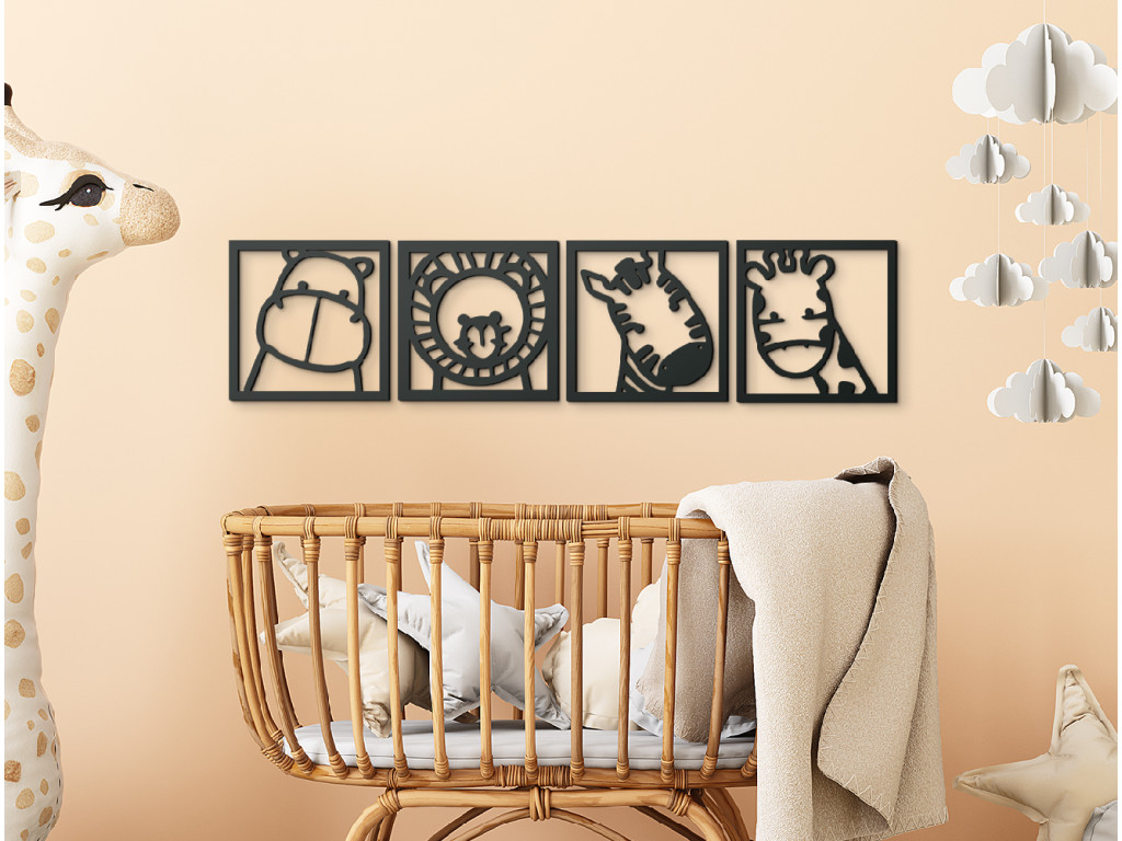 A négy panelből álló Madagaszkár falmatrica egzotikus állatok vidám és színes világát hozza el a gyerekszobába. Mind a 4 panel kedvenc állatokat ábrázol, mint például oroszlánt, zebrát, zsiráfot és vízilovat, játékos és barátságos stílusban megalkotva. Az egyszerű felhelyezés és a rugalmas elrendezés lehetővé teszi, hogy kreatívan testre szabd a matricát gyermeked preferenciái szerint.