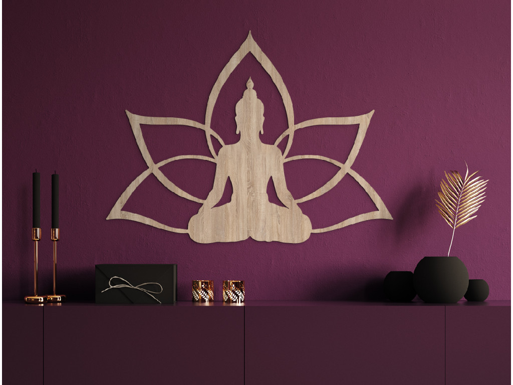A fából készült Buddha faldekor békét és harmóniát visz a terébe. Az elegáns vonalak és a finom részletek nyugtató és meditatív megjelenést kölcsönöznek. Ez a művészi elem feldob bármilyen belső teret, és spirituális jelleget kölcsönöz neki.