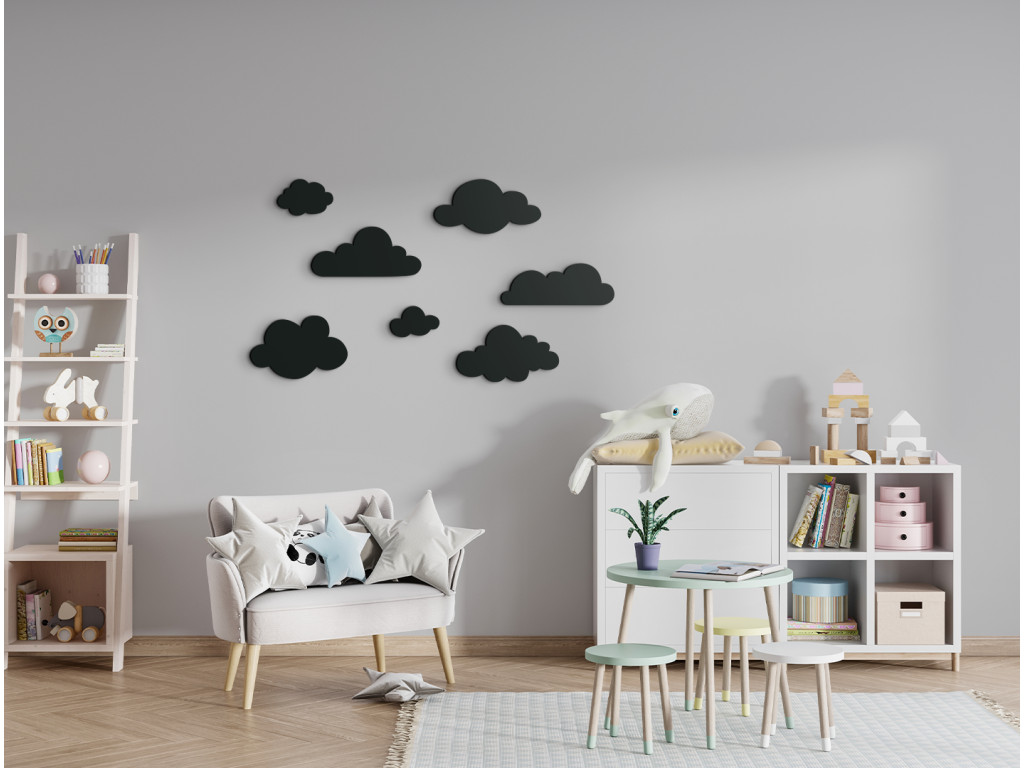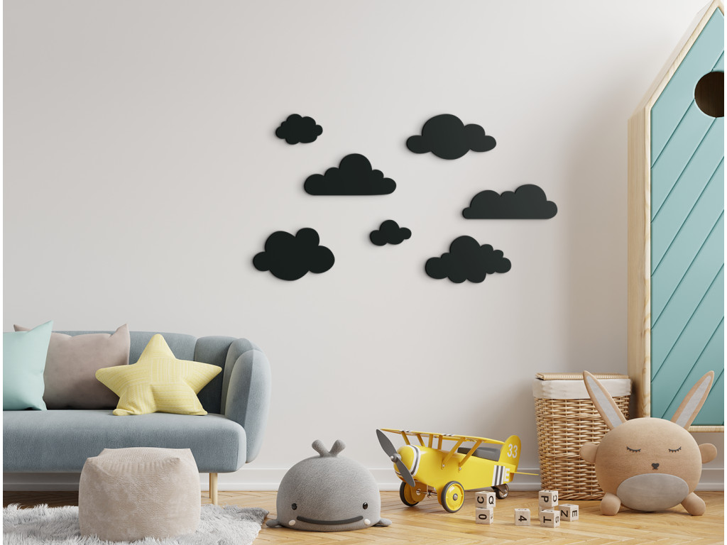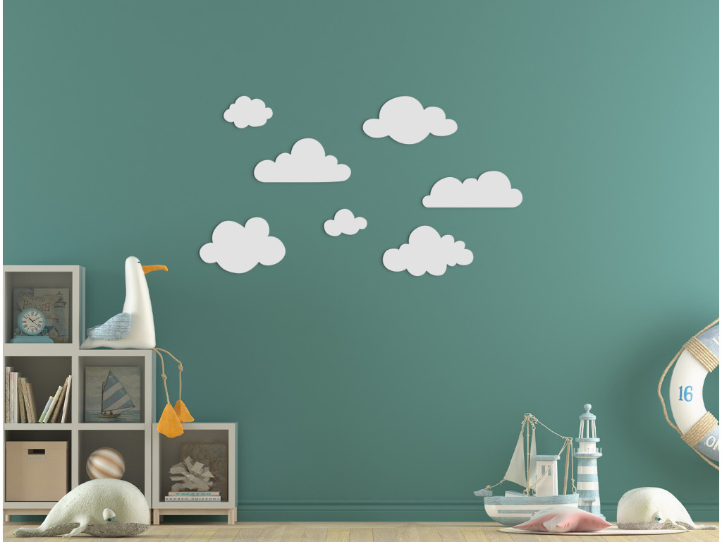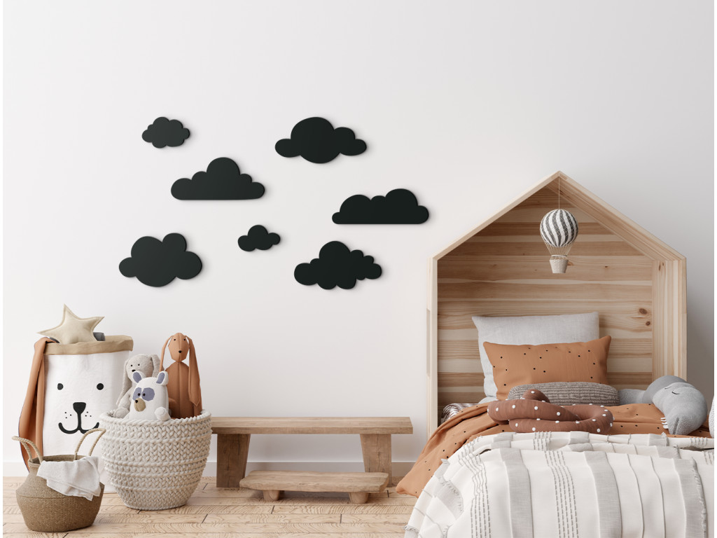 A falon lévő fa felhők megnyugtatják a gyermeket, és segítenek neki szép álmokat álmodni. A felhőket az ágy, kiságy, komód fölé helyezheti. A divatos dizájn tökéletesen megszépíti minden szép kiegészítők szerelmesének belső terét, legyen az kicsi vagy nagy.