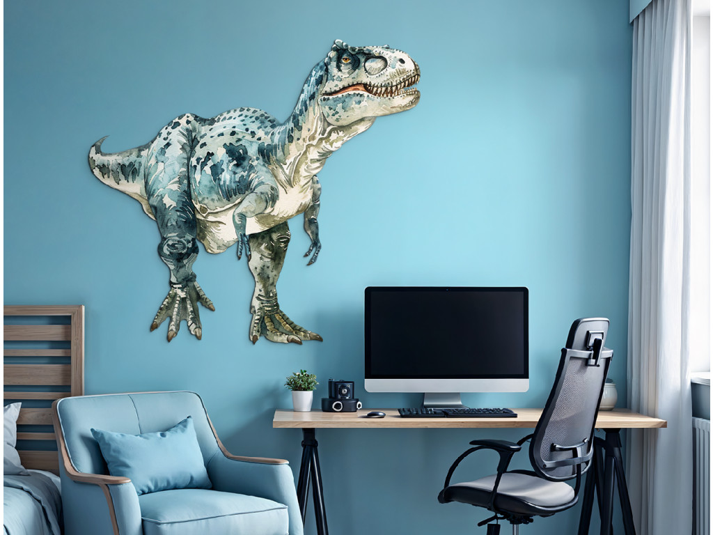 A képen egy Allosaurus látható - egy nagy húsevő dinoszaurusz, amely több millió évvel ezelőtt, a jura időszakban élt. Erős lábaival, éles fogaival és vadász tekintetével lenyűgöző látványt nyújt, de rajz formájában is ideális a dinoszaurusz világ kis rajongóinak. Tökéletes fali dekoráció minden kis paleontológus szobájába!