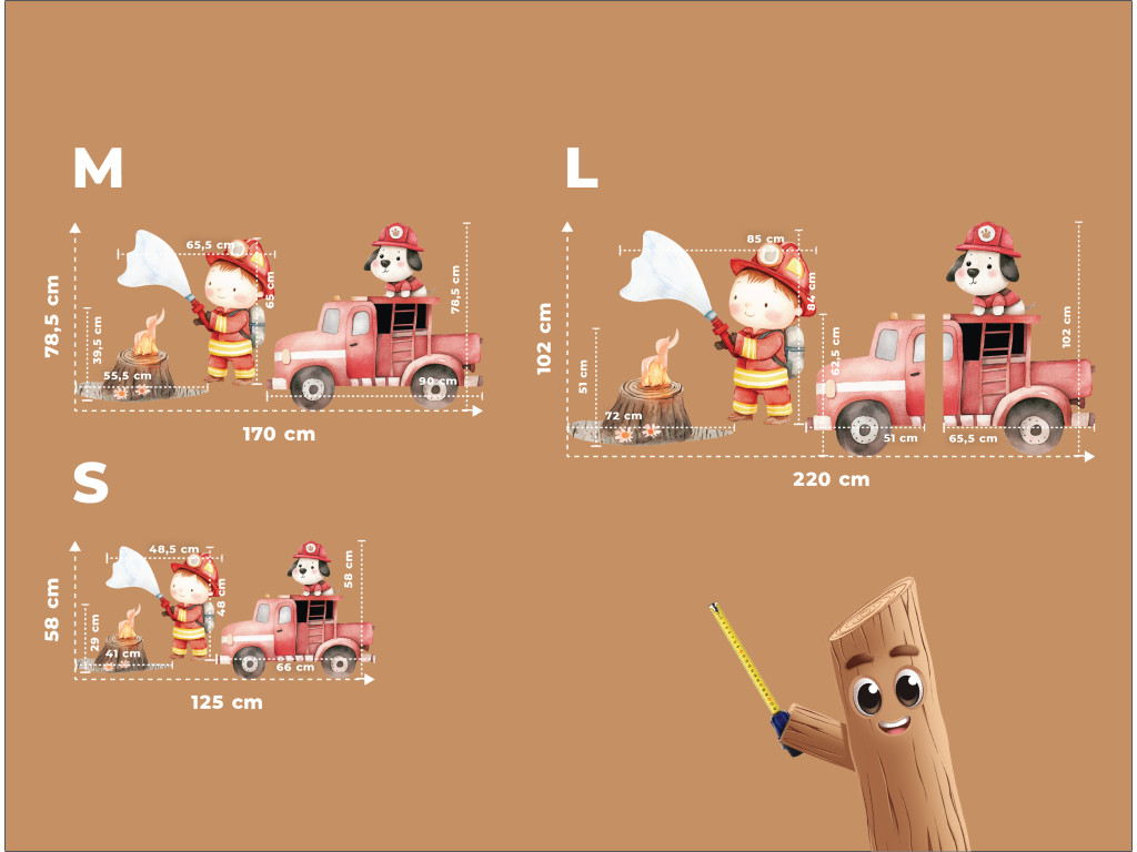 Amikor megérkezik a hívás, a kis tűzoltó és kutyája a tűzoltóautó volánja mögött egy pillanatig sem habozik! Egy vidám kép, tele mozgással, csapatmunkával és gyermeki bátorsággal. Díszítsd a mentőid gyermekvilágát.