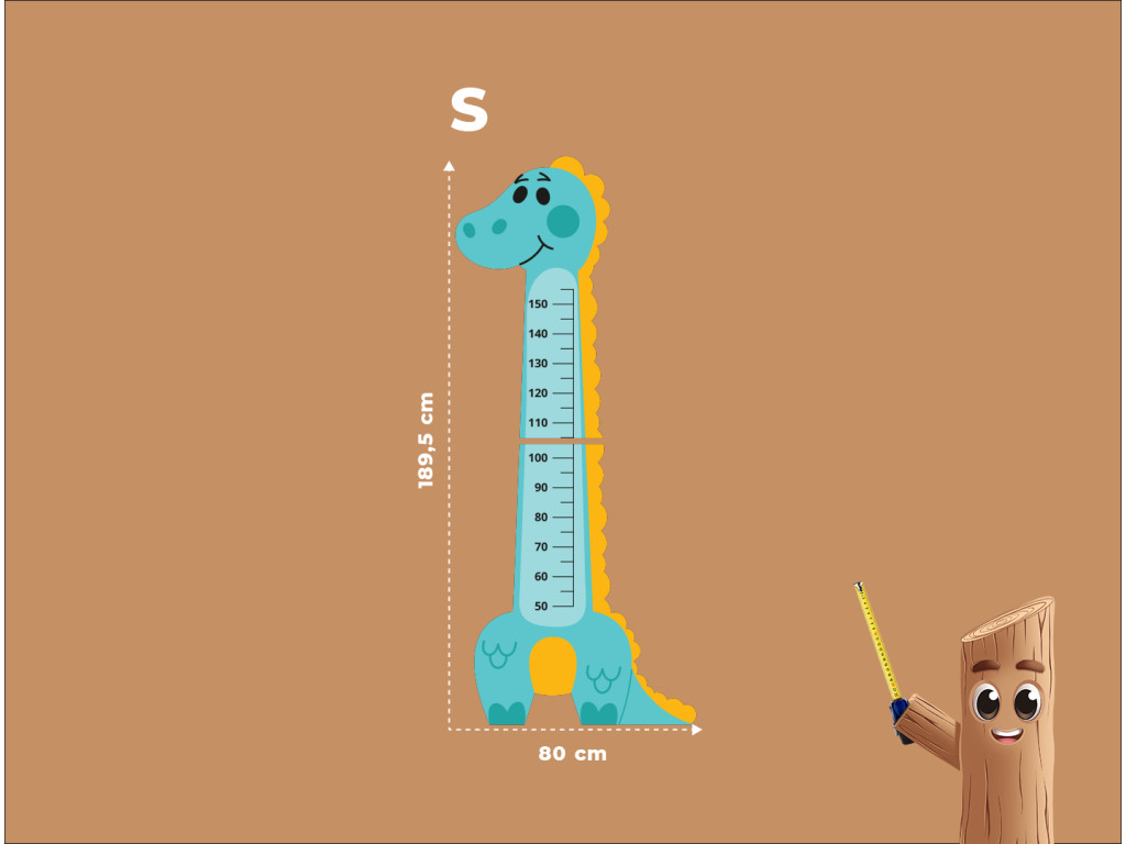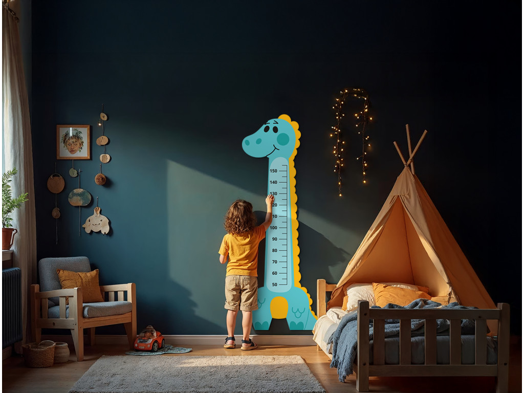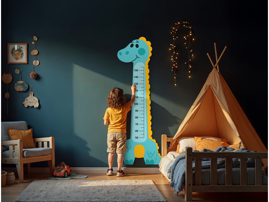 úA dinoszaurusz alakú gyerek fali mérőszalag egy vidám társ, amely megmutatja a gyerekeknek, milyen gyorsan nőnek. A színes és játékos dinoszauruszos dizájn feldobja bármelyik gyerekszobát, és praktikus dekorációként is szolgál. Akár 150 cm-es gyermekmagasságig méri, így kedvenc kiegészítője lesz egész gyermekkorukban.