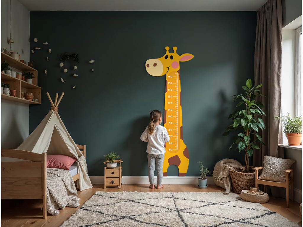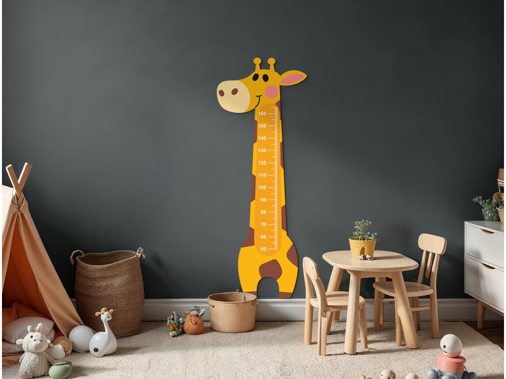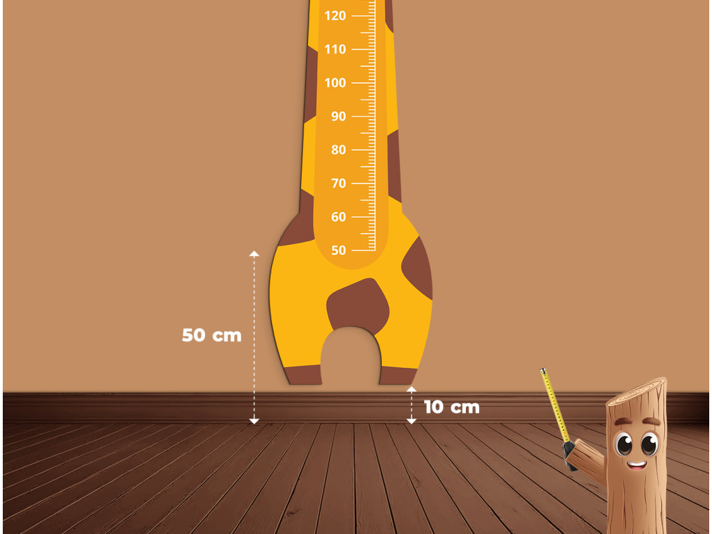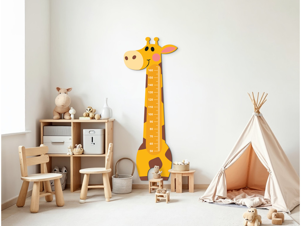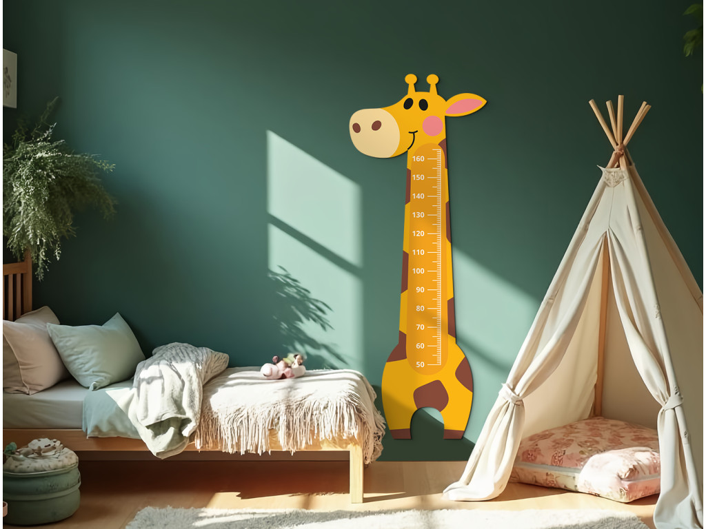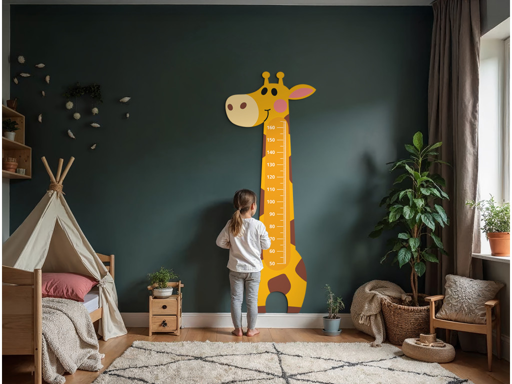 A zsiráf témájú gyerek fali mérőszalag egy játékos kiegészítő, amely segít a gyerekeknek nyomon követni a növekedésüket. A színes zsiráf mintázat vidám hangulatot kölcsönöz a szobának, és praktikus dekorációként is szolgál. Akár 160 cm-es gyermekmagasságig méri, így ideális társ a hosszú évek növekedéséhez és az emlékek megőrzéséhez.