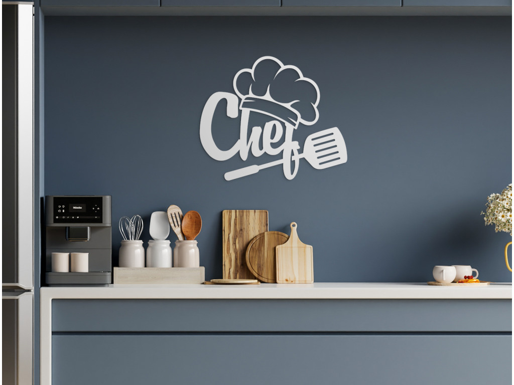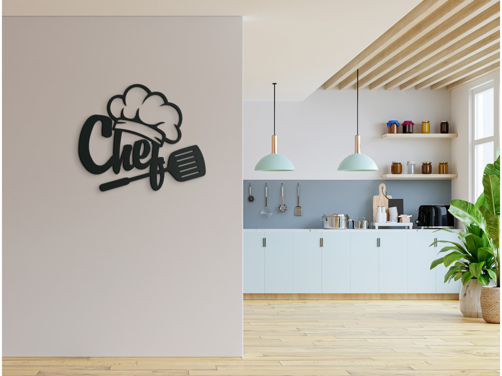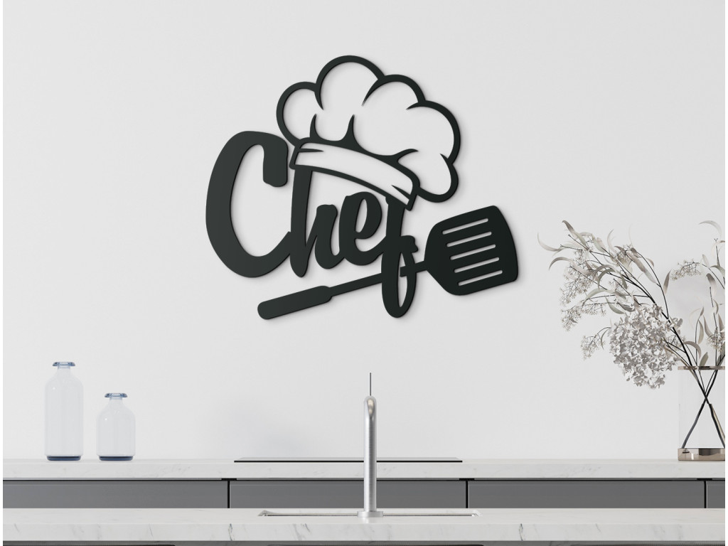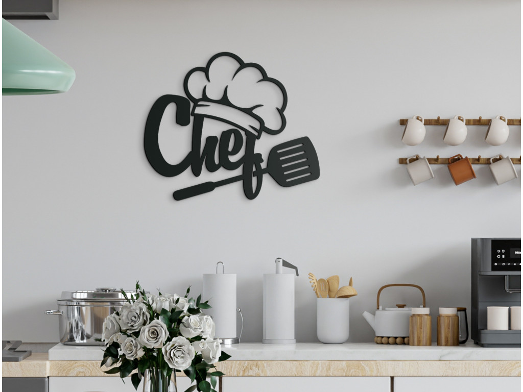 Jól főzni művészet, és aki ezt mesterien teszi, elismerést érdemel. Ha ön is e szerencsések közé tartozik, akkor egy Chef feliratú,szakácssapkát ábrázoló fából készült matrica tökéletes lesz az ön számára A fali dekoráció ajándéknak is alkalmas mindazok számára, akik szeretik a finom ételeket és azok elkészítését.