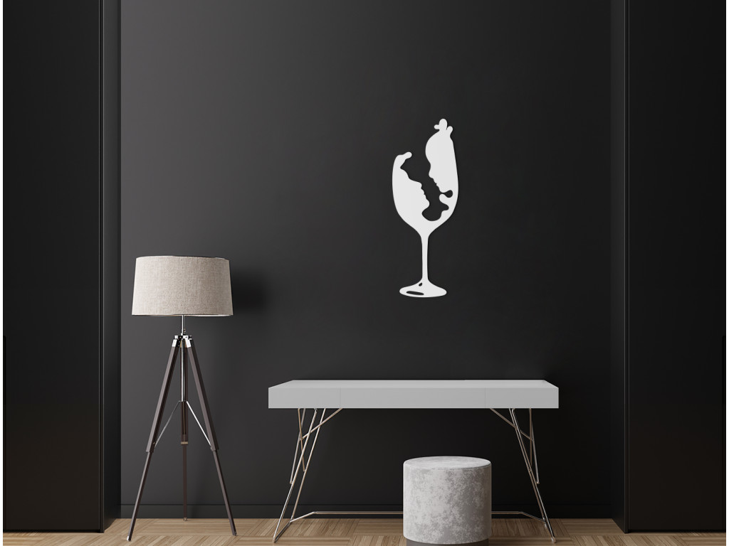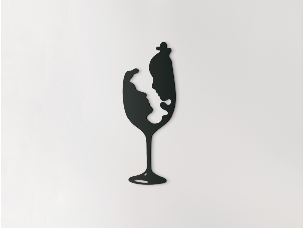 Egy diszkrét fa matrica kehely motívummal a száron, amely egy szerelmes hölgy és egy szerelmes férfi profilját rejti, minden nyüzsgő léleknek örömet okoz.