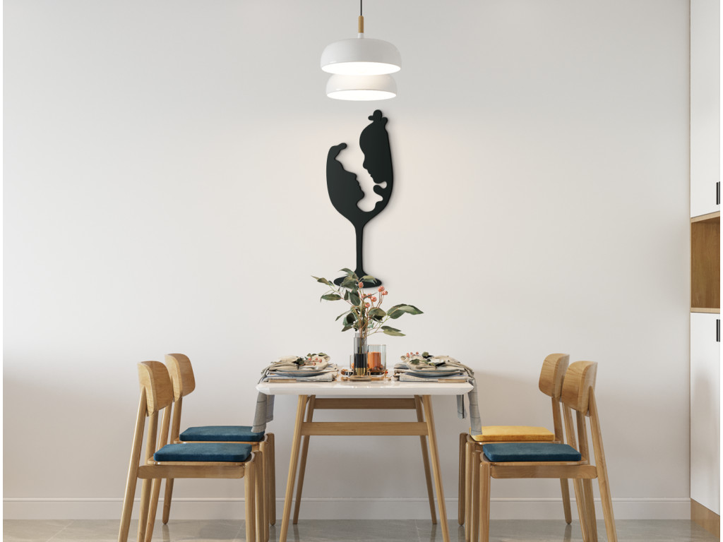 Ennek a fából készült falmatricának az első pillantásra megragadó romantikus motívuma a száron lévő pohár képében rejtőzik. Ha azonban alaposan megnézi, felismeri egy szerelmespár arcát, akik nyilvánvalóan meleg érzelmeket táplálnak egymás iránt. Egy bájos dekoráció díszíti nappalija, étkezője, hálószobája vagy bármely más helyisége falát. A Kehely szerelmesek fából készült matricája kiváló ajándék szeretteinek.