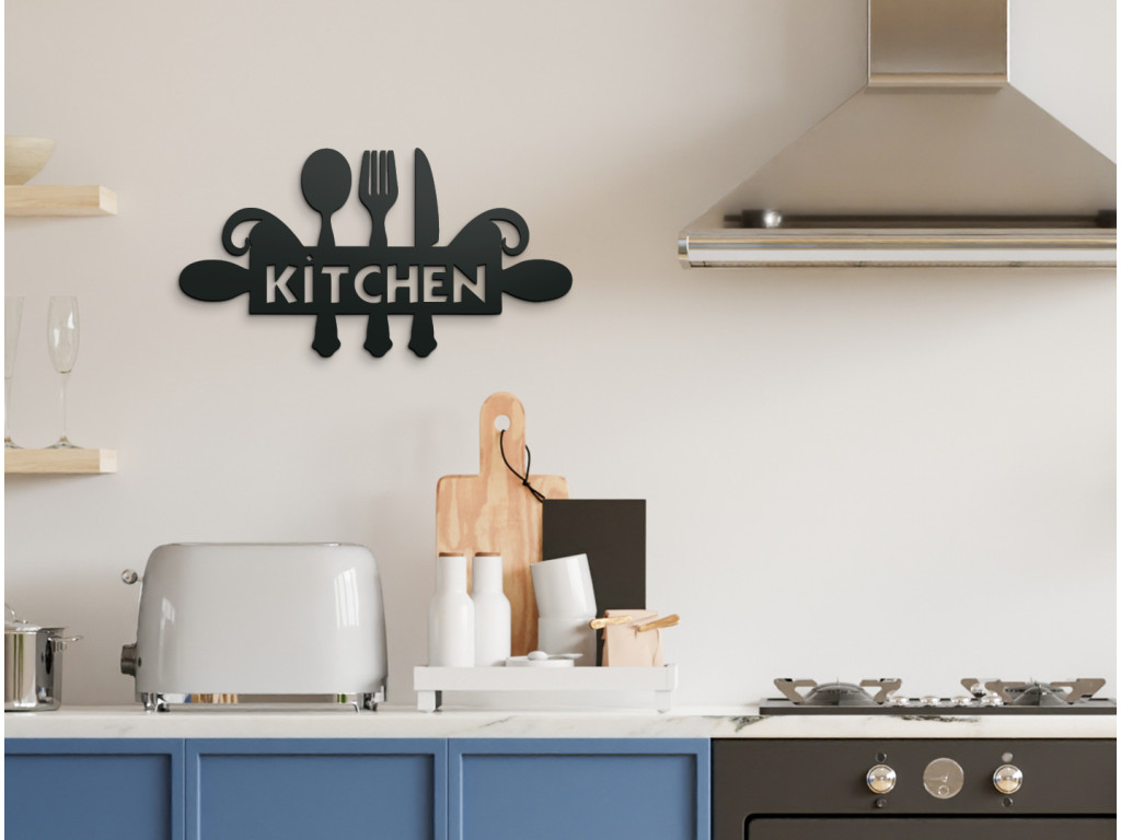 Szépítse meg konyháját egy modern, időtlen motívumú fa matricával. A díszítés illusztrációján kanál, villa és kés látható, alatta a Kitchen felirat található. A konyhapult vagy étkező fölé ragaszthatja, mindenhol jól mutat majd. A megfelelő dekoráció kiválasztásával harmonikus összhangot érhet el a többi berendezéssel.
