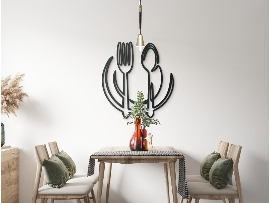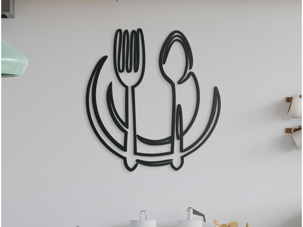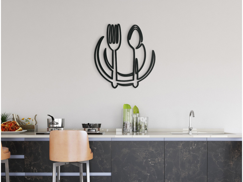 A tányér és az evőeszközök látványa azonnal felkelti az étvágyat, ezért az ezzel a motívummal ellátott fa falmatrica tökéletes a konyhába, étkezőbe vagy éttermekbe. Tegye kellemesebbé étkezési idejét. Válasszon olyan színű dekorációt, amely illeszkedni fog a belső teréhez.