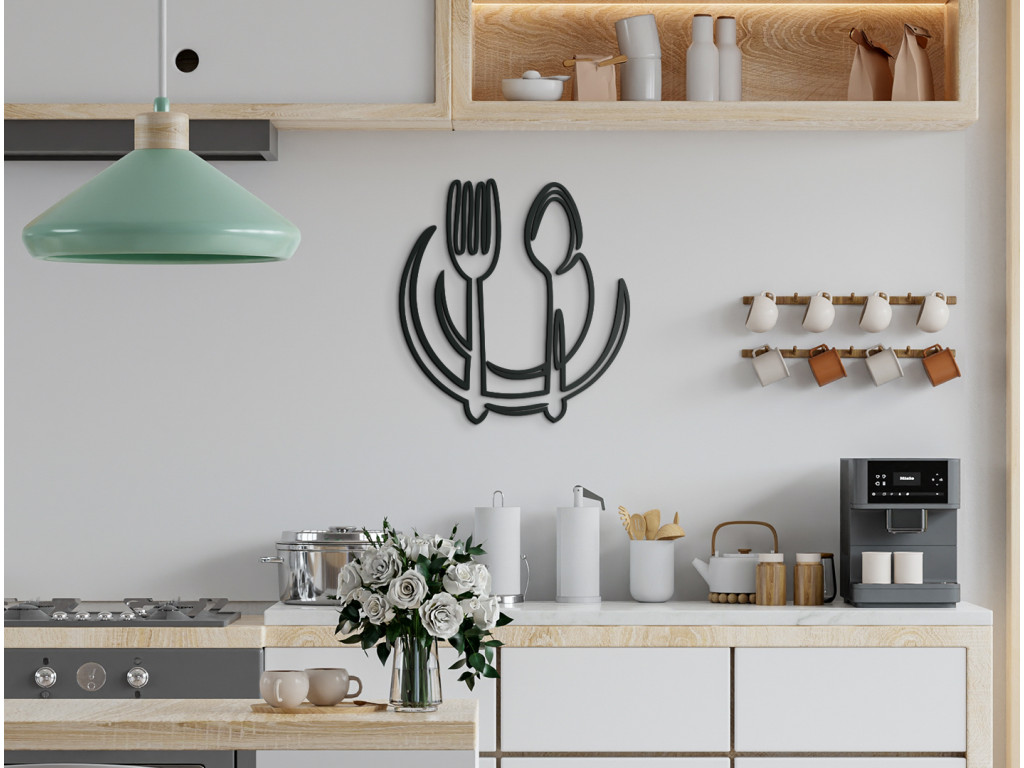 Mindenki szereti a jó ételeket, és a tányér és evőeszközök képével díszített fa dekoráció pedig szó szerint arra késztet, hogy megkóstoljon valamilyen finomságot. A faragott matrica remek ajándékötlet is (nem csak ínyenceknek). Az időtlen dizájn minden háztartást vonzóvá varázsol.