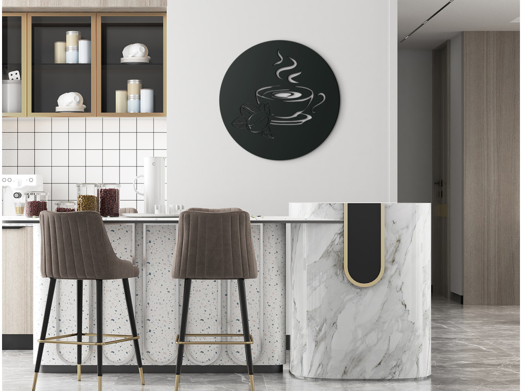 Mitől lesz a leginkább boldog egy kávéfogyasztó? Egy igazi, illatos csésze kávétól. A fa falikép a gőzölgő kávé motívumával biztosan tetszeni fog a kiváló ital minden kedvelőjének. Ideálisan kiegészíti a konyha, étkező vagy nappali belső terét, és biztosan megtalálja a helyét irodákban, kávézókban vagy éttermekben. Biztos lehet abban, hogy a gőzölgő kávé képe azonnal pozitív érzelmeket vált ki.