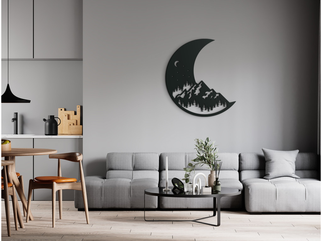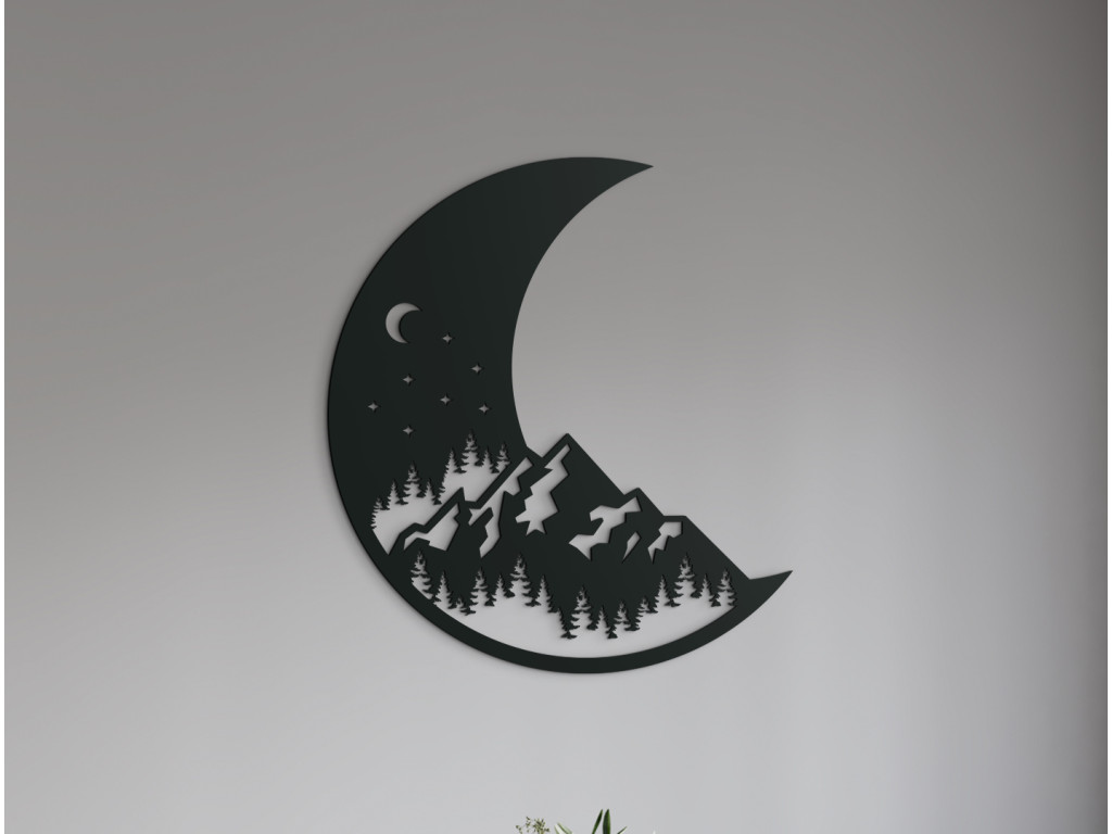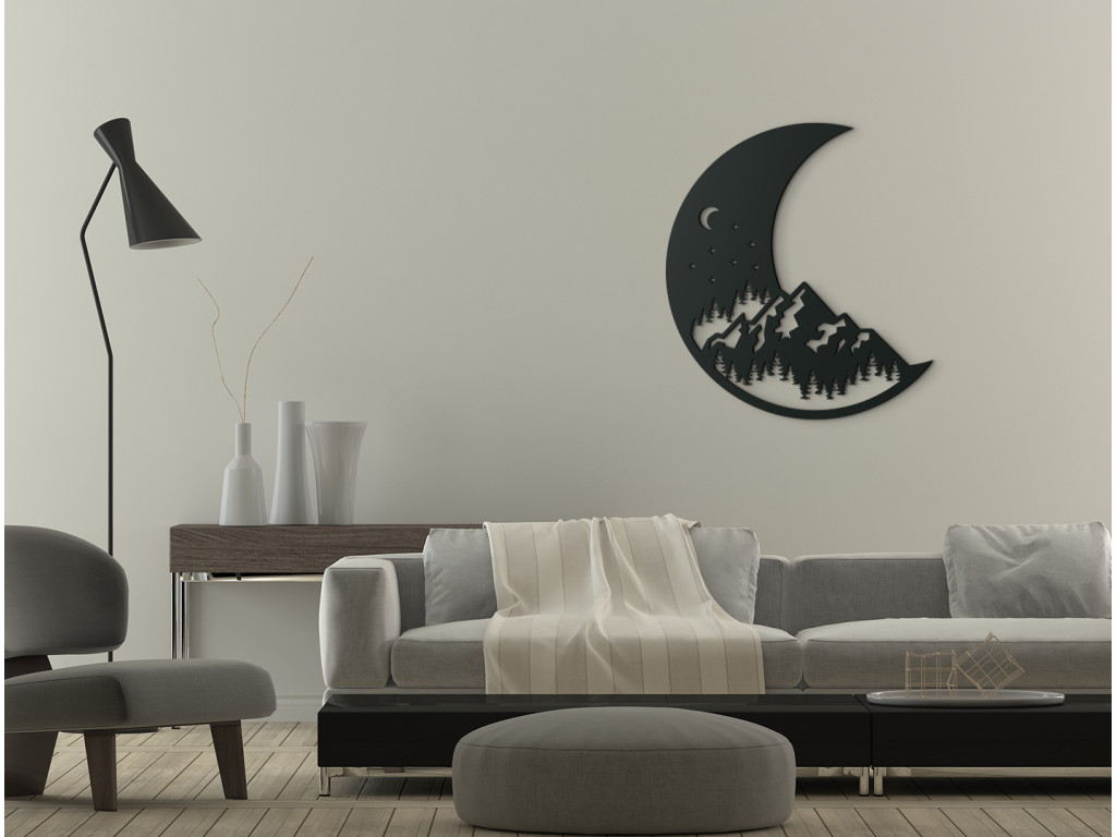 Hagyja, hogy a természet kiemelje a belső terek szépségét. Ez az atipikus kép igazán dizájnos hatást kelt. A holdmatrica egyáltalán nem hétköznapi. Látható rajta egy erdő, amely fölött hegyek terülnek el. E hegyek fölött a csillagok és a Hold, mint az éjszaka további jellegzetes motívumai találhatók.