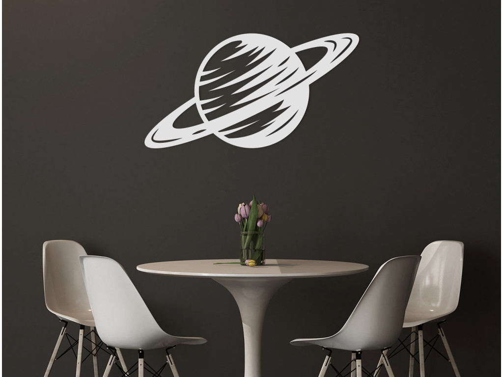 A Szaturnusz bolygó jellemző gyűrűkkel rendelkezik. Dekorációként modern terekbe illeszkedik. Több szín közül választhat. Akassza fel a gyerekszobába vagy a nappaliba. A falmatrica modern és bájos kialakítása a ház bármely helyiségébe illeszkedik.