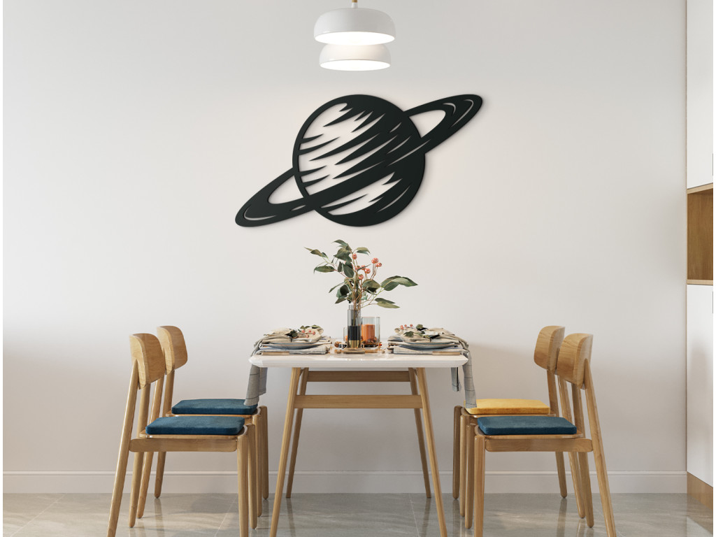 Eredeti dekorációt keres a belső térbe? A Szaturnusz fa matrica egyediséget hoz a belső térbe. A kiegészítő alkalmas ágy, asztal, komód fölé. Modern és klasszikus gyerekszobákba egyaránt illeszkedik. Ez a fakép minden szobában ragyogni fog.