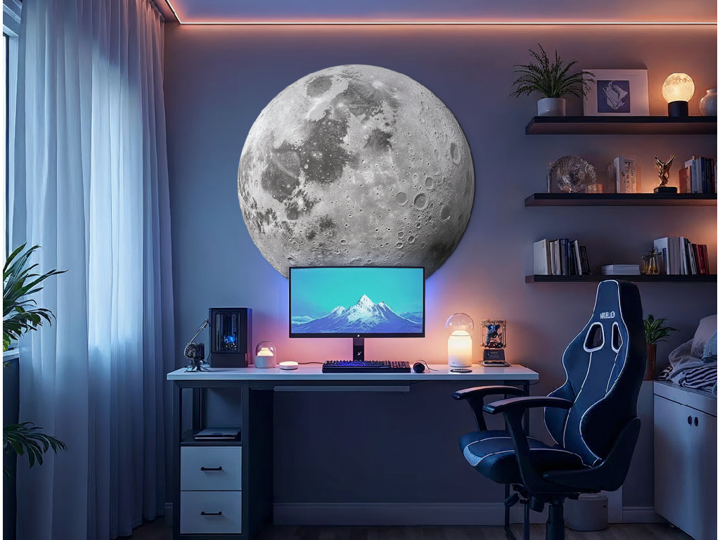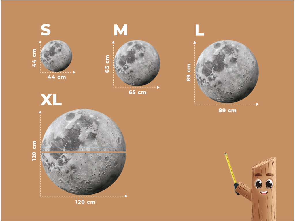 Ez a lenyűgöző faldekoráció a Hold realisztikus részletét ábrázolja látható kráterekkel és felszíni struktúrával. A szürke finom árnyalatai természetes benyomást keltenek, így a dekoráció alkalmas mind a gyerekszobába, mind a modern enteriőrbe. Ideális választás a tér, az esztétika és a békés hangulat szerelmeseinek.