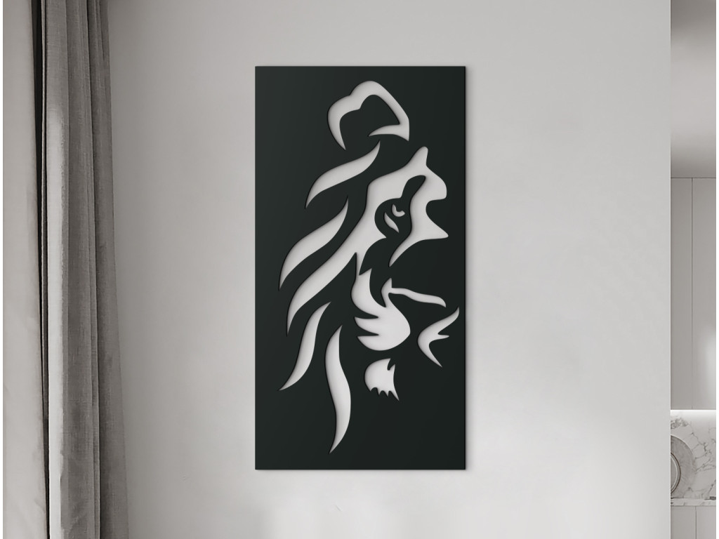 Ez a fa dekoráció tökéletesen megjeleníti az állatok királyának büszkeségét és fenségét. A minimalista és egyben rendkívül tömör oroszlánfej a maga egyedi módján hívja fel magára a figyelmet. A kép alkalmas nappaliba, hálószobába, előszobába és irodába. A modern otthoni kiegészítők szerelmeseinek is tökéletes ajándékötlet.