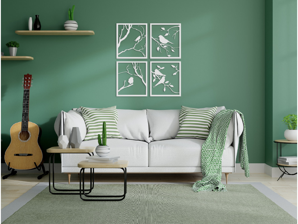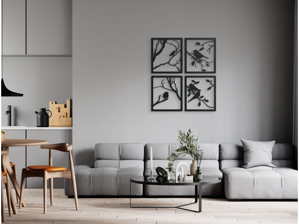 A faágakon éneklő cinege az otthon minden falát széppé varázsolja. A kép 4 részből áll, melyek egyben vagy külön-külön is felakaszthatók. Az egyedi dizájn mellett egy kis harmóniát is hoznak magukkal. A dekoráció alkalmas étkezőbe, konyhába, előszobába és nappaliba.