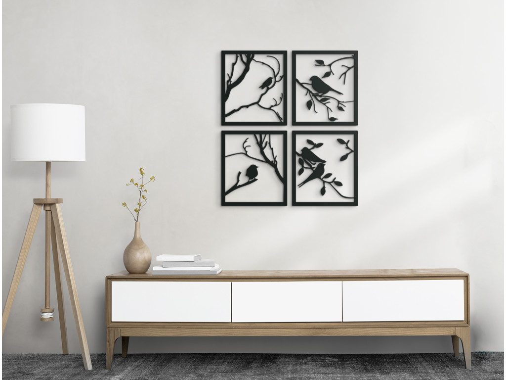 Az ágon ülő cinegéket ábrázoló falfestmény szépen leírja ezeket a kedves fecsegő lényeket. A kép 4 részből áll, melyeket saját stílusa szerint helyezhet el. Gyönyörűen kiemelkedik a gyerekszobában, a nappaliban és a folyosón.
