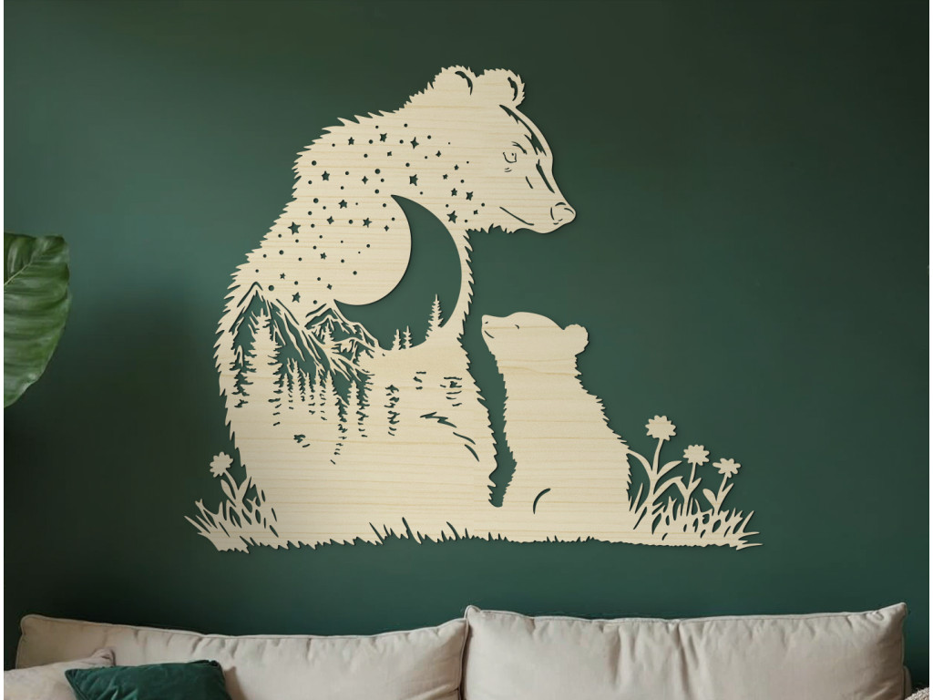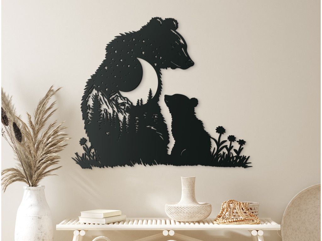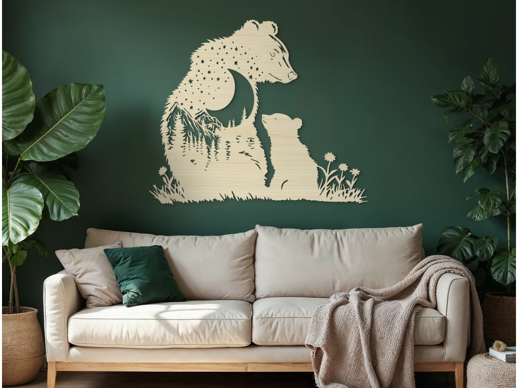 A holdfényes tájképet ábrázoló, Medve boccsal, fából készült faldekoráció egy fenséges medvét ábrázol, melynek belső fénye hegyekkel, erdőkkel, a holddal és csillagokkal teli. A finom részletek titokzatos és nyugtató hangulatot teremtenek. Ez az eredeti kiegészítő egyedi és varázslatos hangulatot kölcsönöz otthonának.